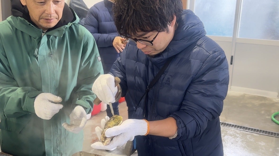 そして、次に向かったのが、奥松島牡蠣のリーダー、浜義丸水産の二宮社長の加工場へ。