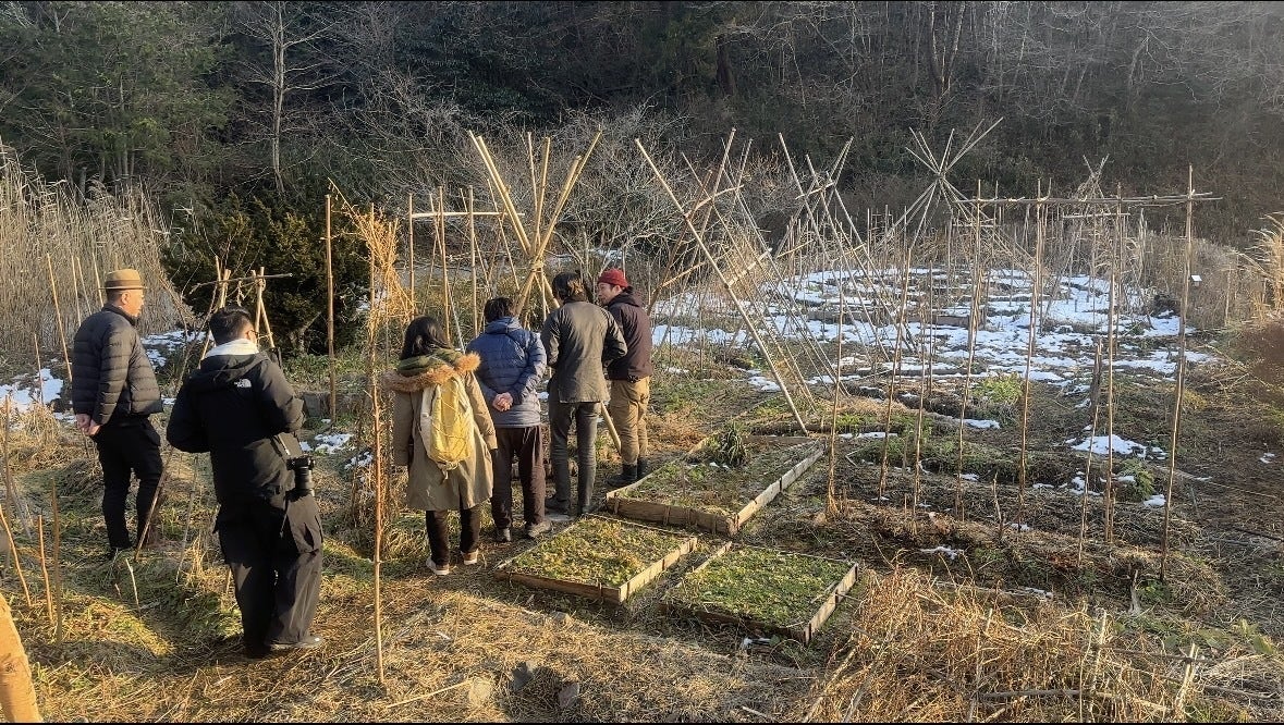 そして、スマートエコビレッジでも取り入れていく「パーマカルチャー」この東松島で、機械も肥料も使わず、米や野菜を育てている、雨日土さんの畑にお邪魔し、野菜の育て方を学び、採れたての野菜をいただきました。
