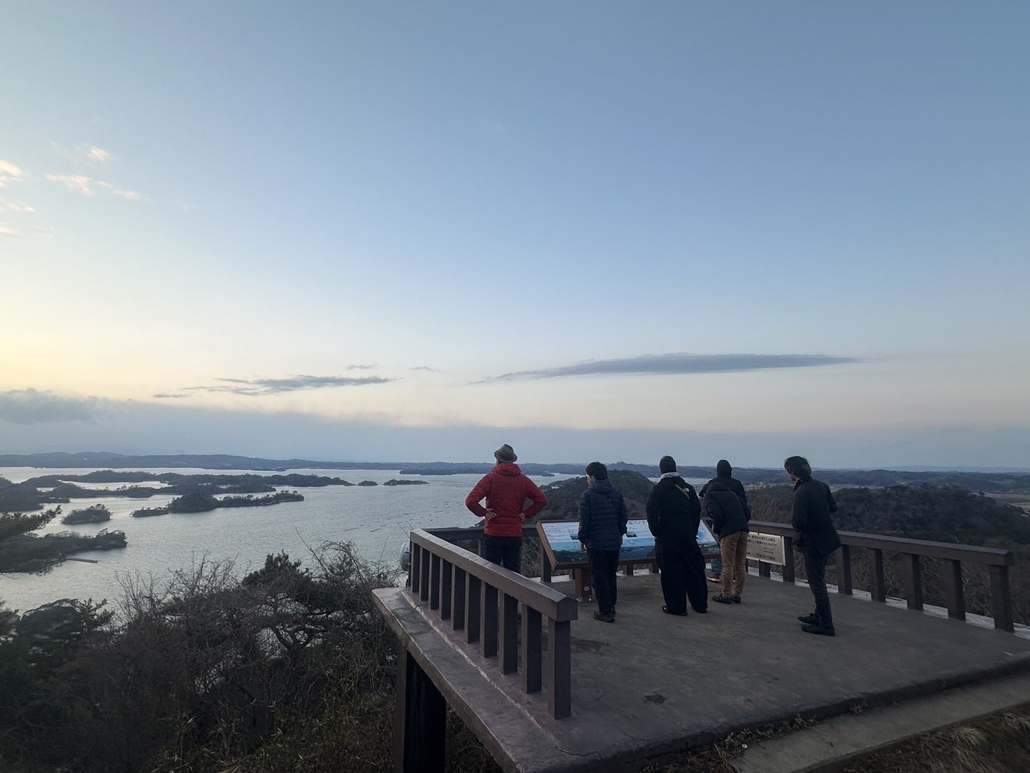 最後は100メートルほどの大高森に登り、自然に触れ、頂上からの東松島の町を眺め、震災と復興について学び、1日目の研修は終了となりました。
