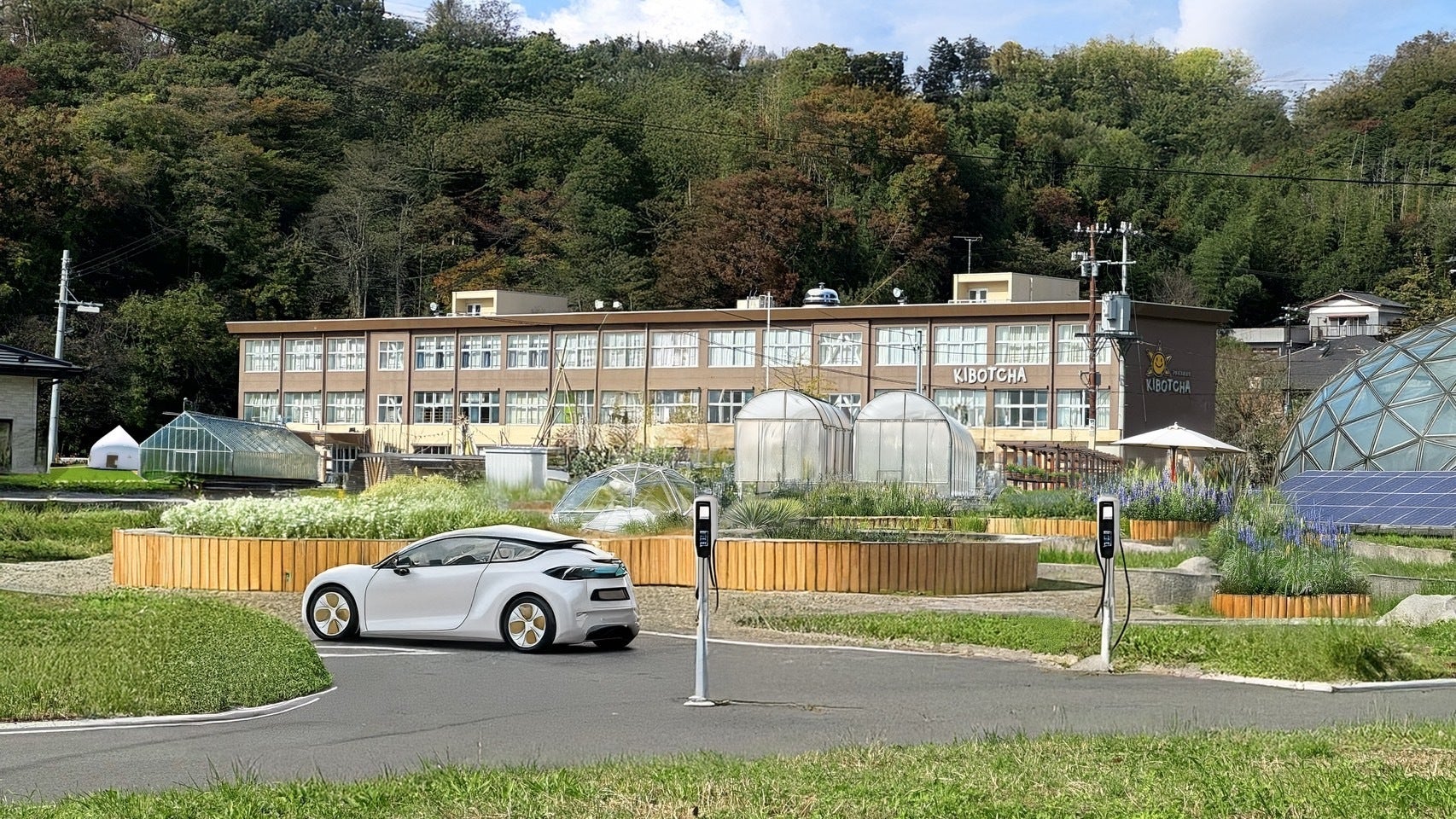KIBOTCHAスマートエコビレッジでは、EVをカーシェアリングシステムで運用し、住民や訪問者が共有して利用することで、地域内外の移動手段としての役割を果たします。 個別の車両が減少し、交通効率が向上するとともに、環境への負荷も軽減されます。EVはすべて電気自動車を採用し、脱炭素社会に向けた象徴的な移動手段としてeエリア内を走ります。
