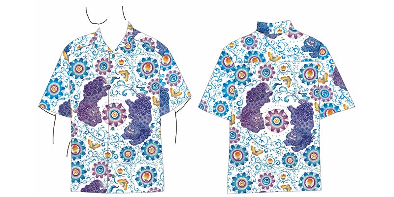 沖縄店のオープンに向けて、沖縄の伝統工芸である琉球紅型(びんがた)作家の崎山ハナエさんに、めめんともりオリジナル紅型を制作していただきました。紅型染めをモチーフにした装飾で、独特の沖縄らしさあふれる空間を演出します。また、かりゆしウェアなどのオリジナルグッズも販売予定です。