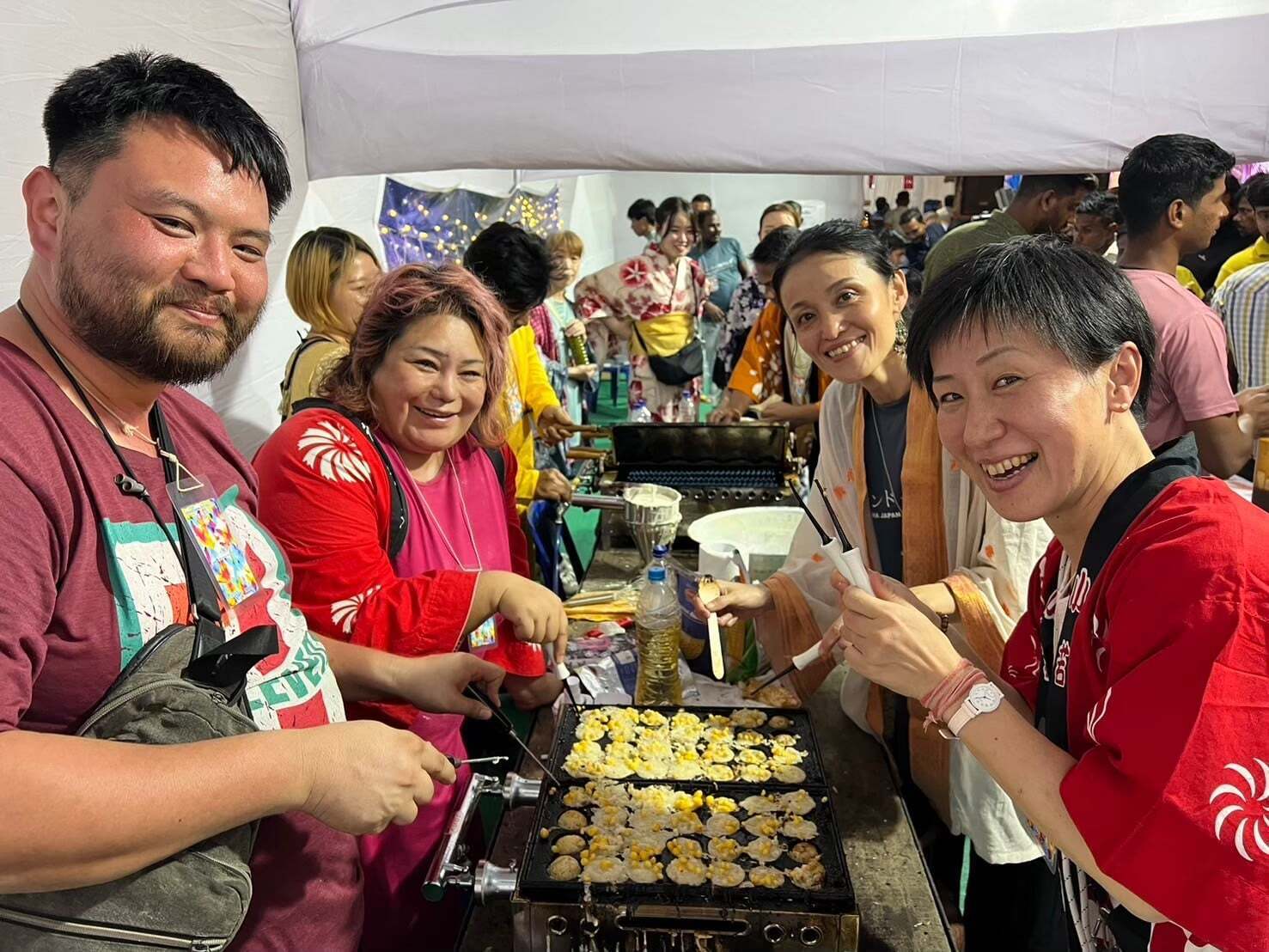 日本の屋台ブースも、インドの屋台ブースも、夢を書くブースも、たこ焼きを配るブースも大盛況。
