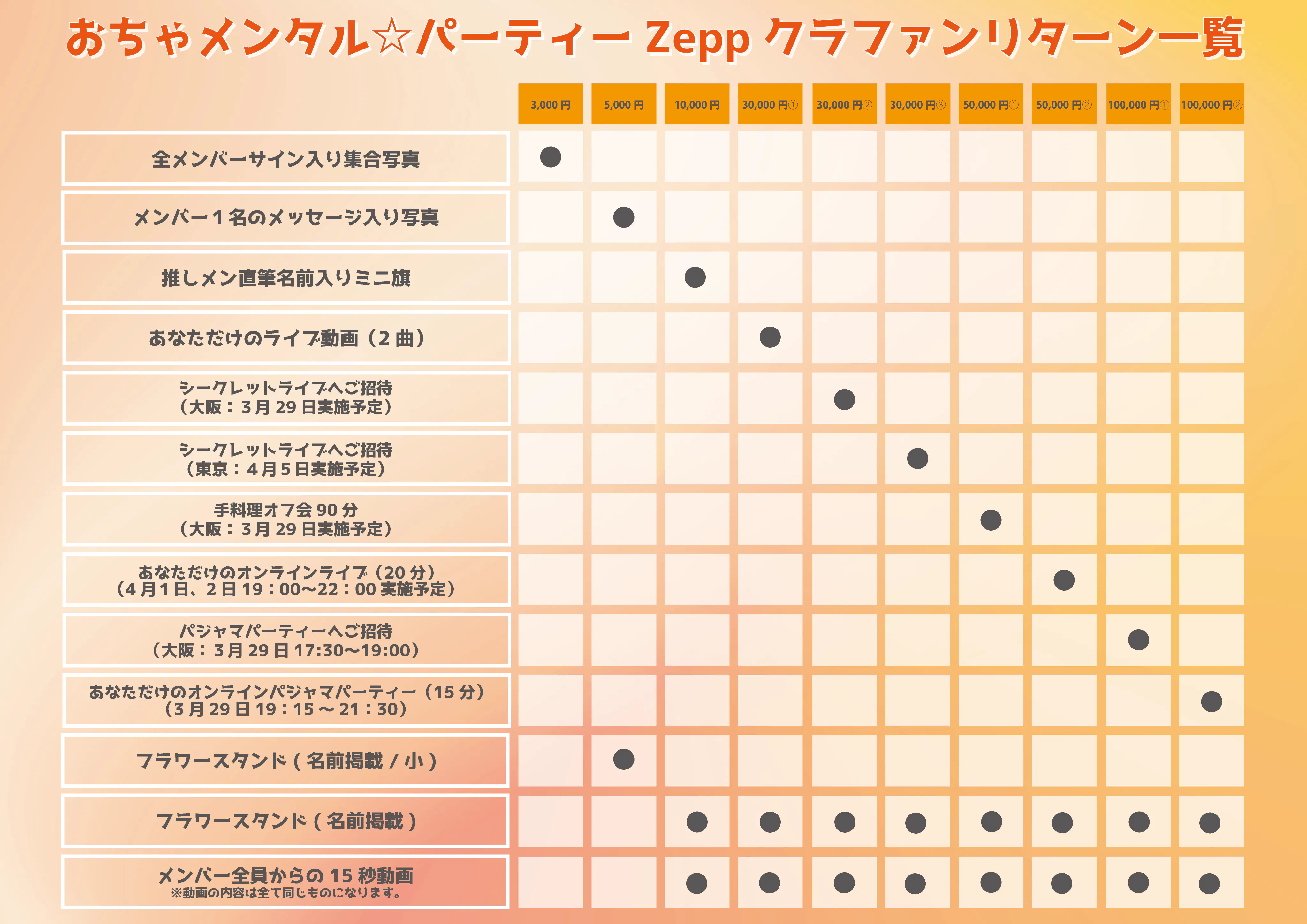 ご支援いただいた支援金は、下記の内容を含めメンバーの要望に沿って使用させていただきます。(支援金に応じて記載内容以外にも演出アップのために使用させていただきます。)
