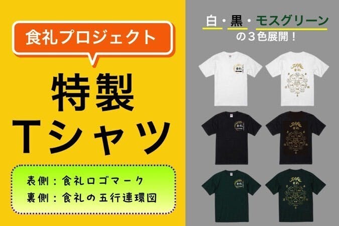 食礼プロジェクト特製Tシャツ(白・黒・モスグリーン) 6,000円