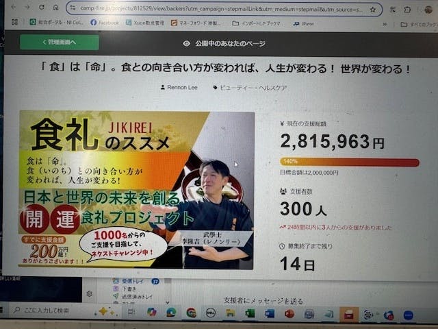 食礼プロジェクトの支援者が300名を越えました!!