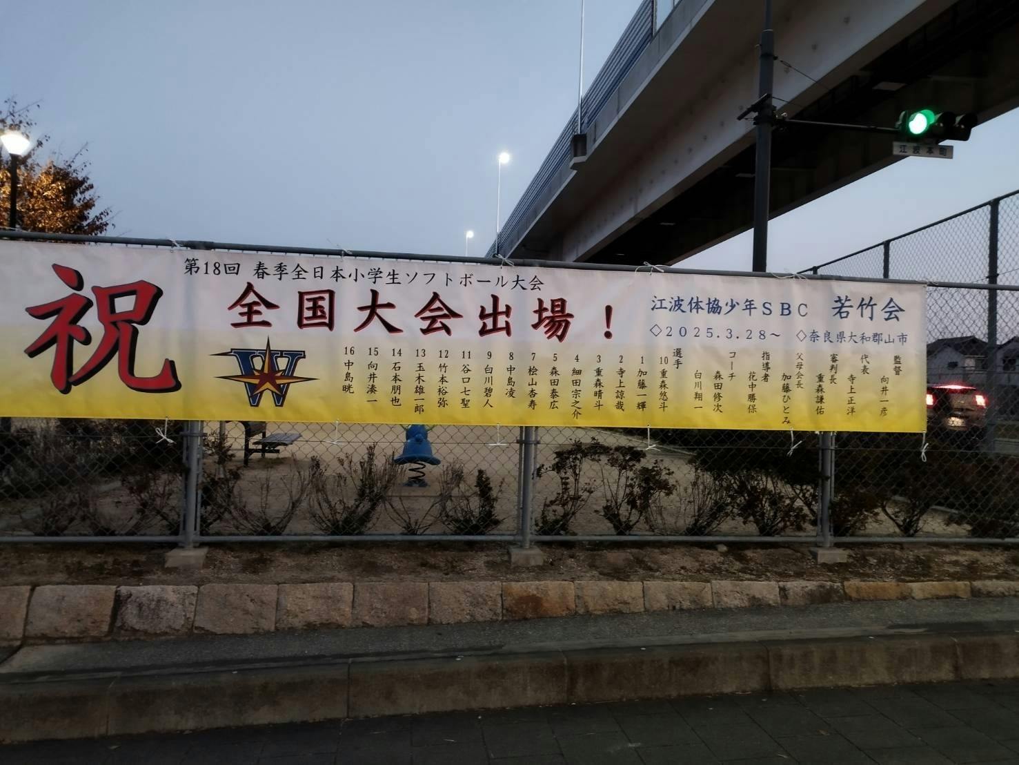 監督、コーチ、指導者、江波体協様にご負担いただき、横断幕が完成しました!
