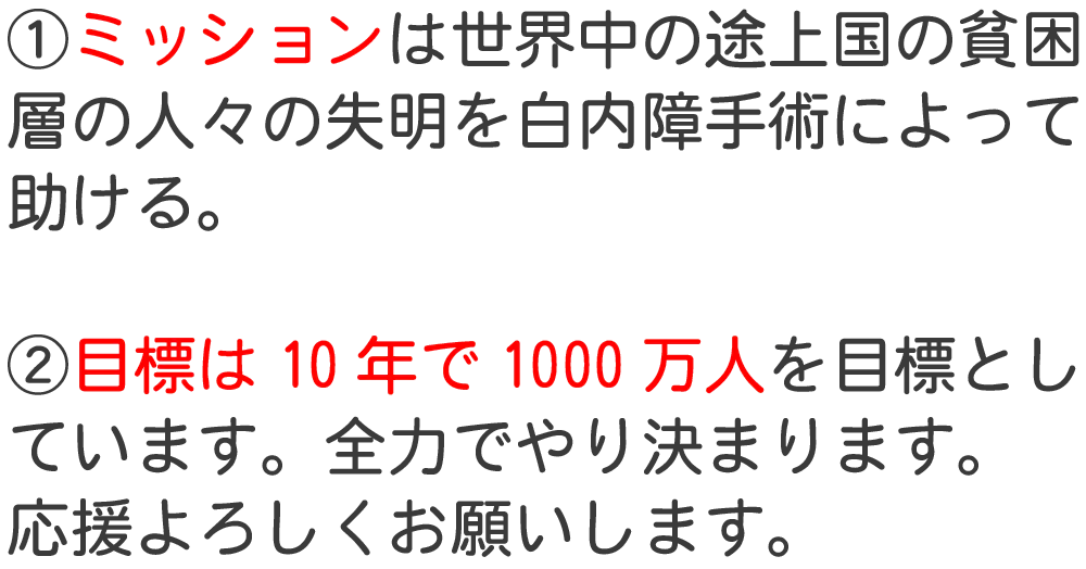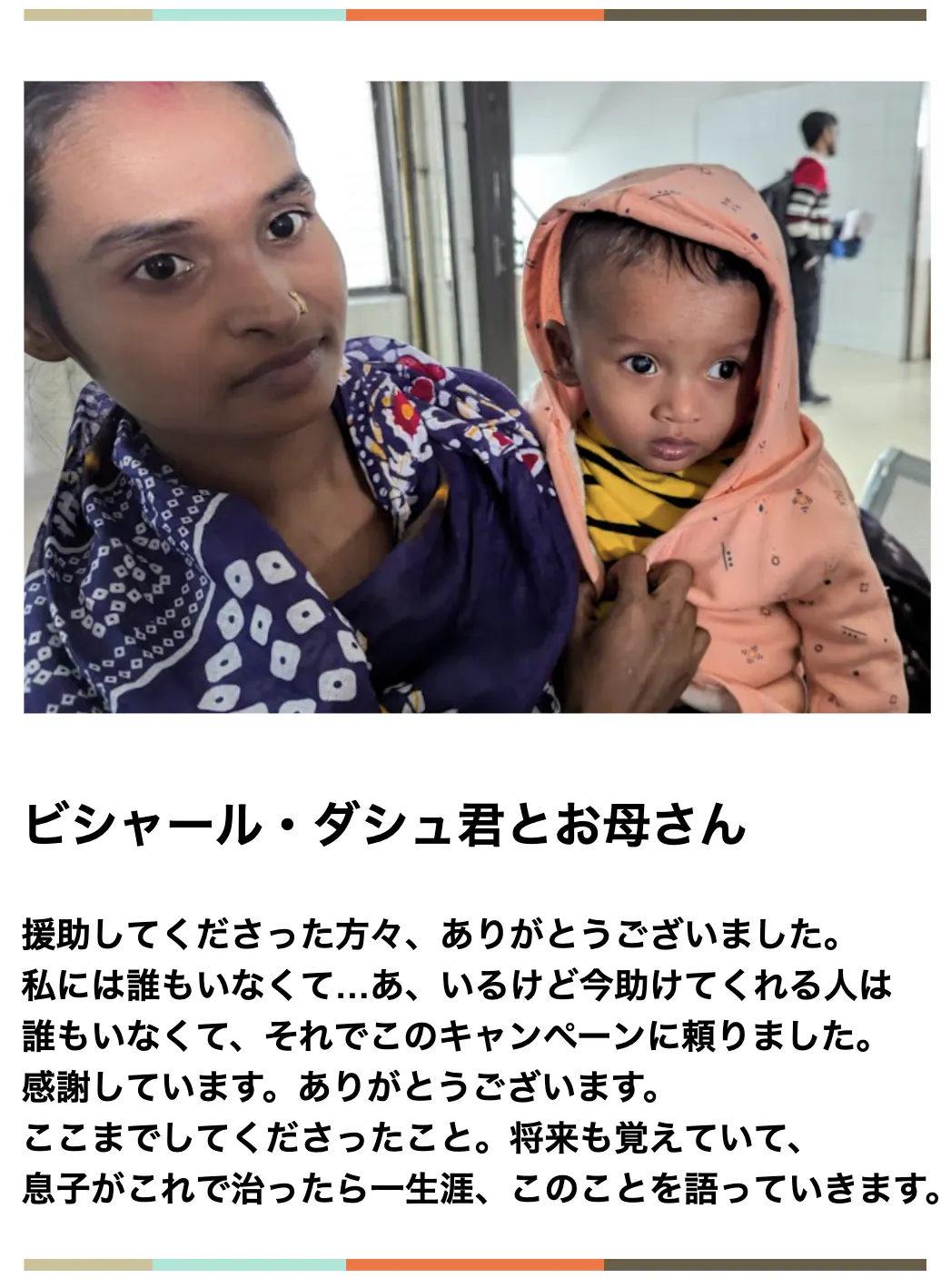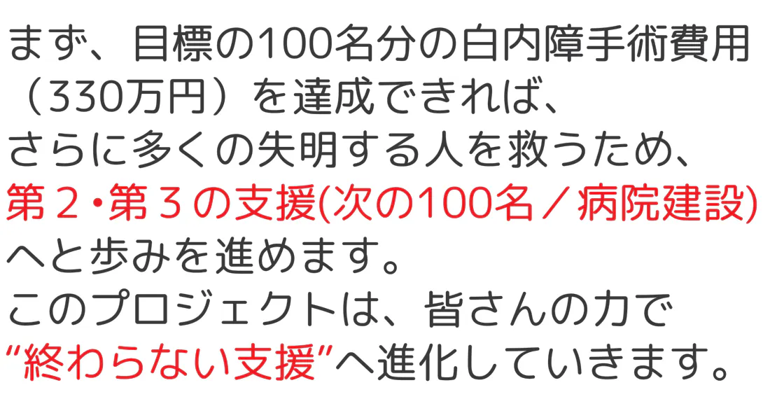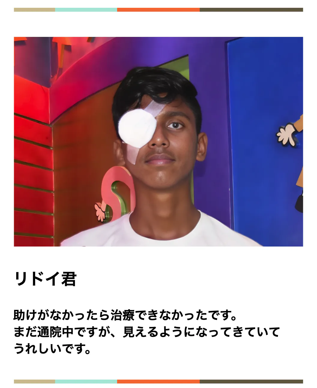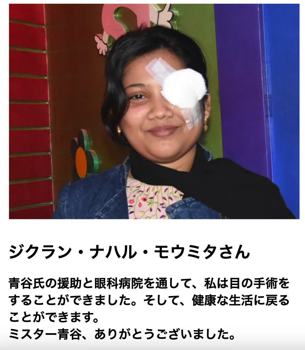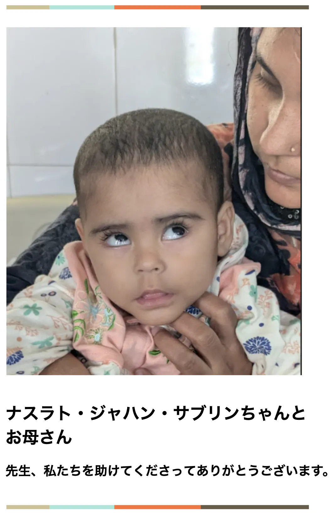 【お礼のメッセージ&現地訪問ツアー】 感謝の気持ちを込めて、お礼のメッセージをお送りします。(5,000円と同じリターン内容です。) 患者様からのありがとうの動画メールを送りします。(10,000円と同じリターン内容です。) 感謝状(枠付き)を送ります。(100,000円と同じリターン内容です。) 患者さんとのZoom面談(バングラディシュから2025年10月頃予定)(300,000円と同じリターン内容です。) 現地へ訪問ツアーを実施いたします。(3泊4日、宿泊費・旅費・ガイド代金込み。) 現地ツアーの予定につきましては、プロジェクト終了後に現地スタッフと予定を合わせて決定いたします。 現地ツアーの実施予定は2026年1月を予定しています。