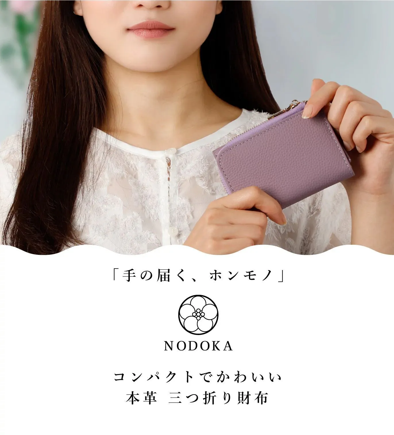 「手の届く、ホンモノ」本革三つ折り財布『NODOKA』