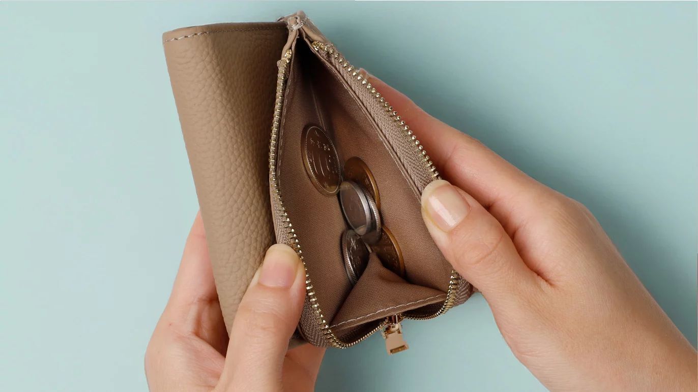 L字ファスナー式の小銭入れには、マチが付いていて、小銭の出し入れがしやすくなっています。