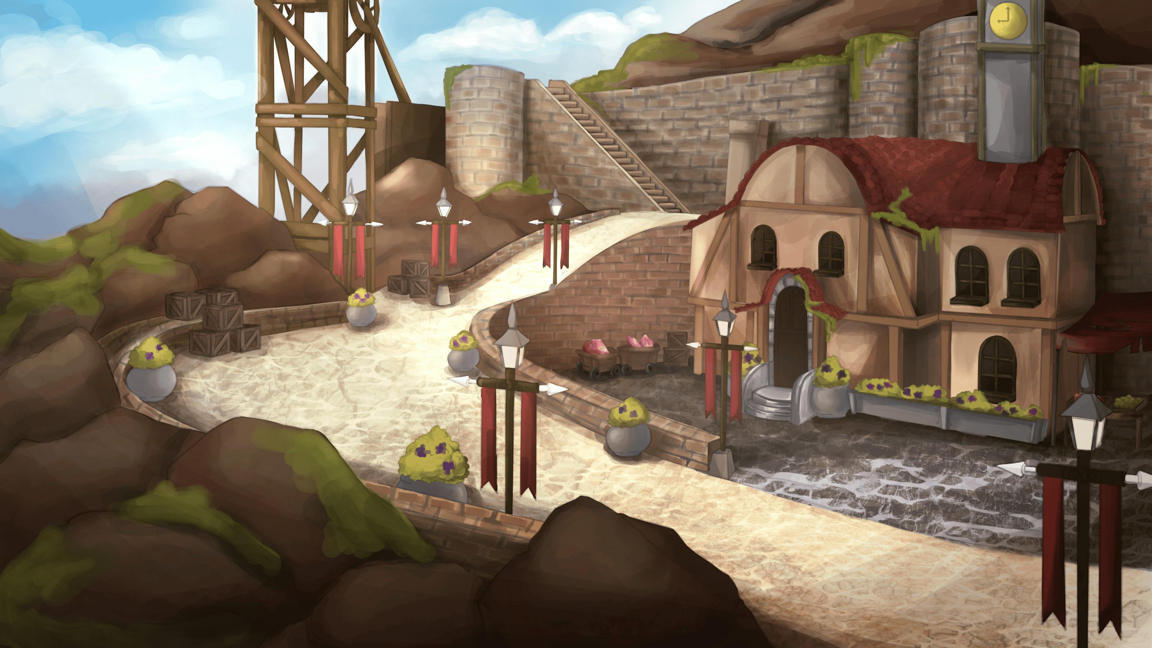 冒険者ギルドもここに集まり、機械加工の職人を訪ねて新しい加工機を手に入れたり、博物館を見学したり、彫り込まれた街の頂から絶景を楽しんだりできる。