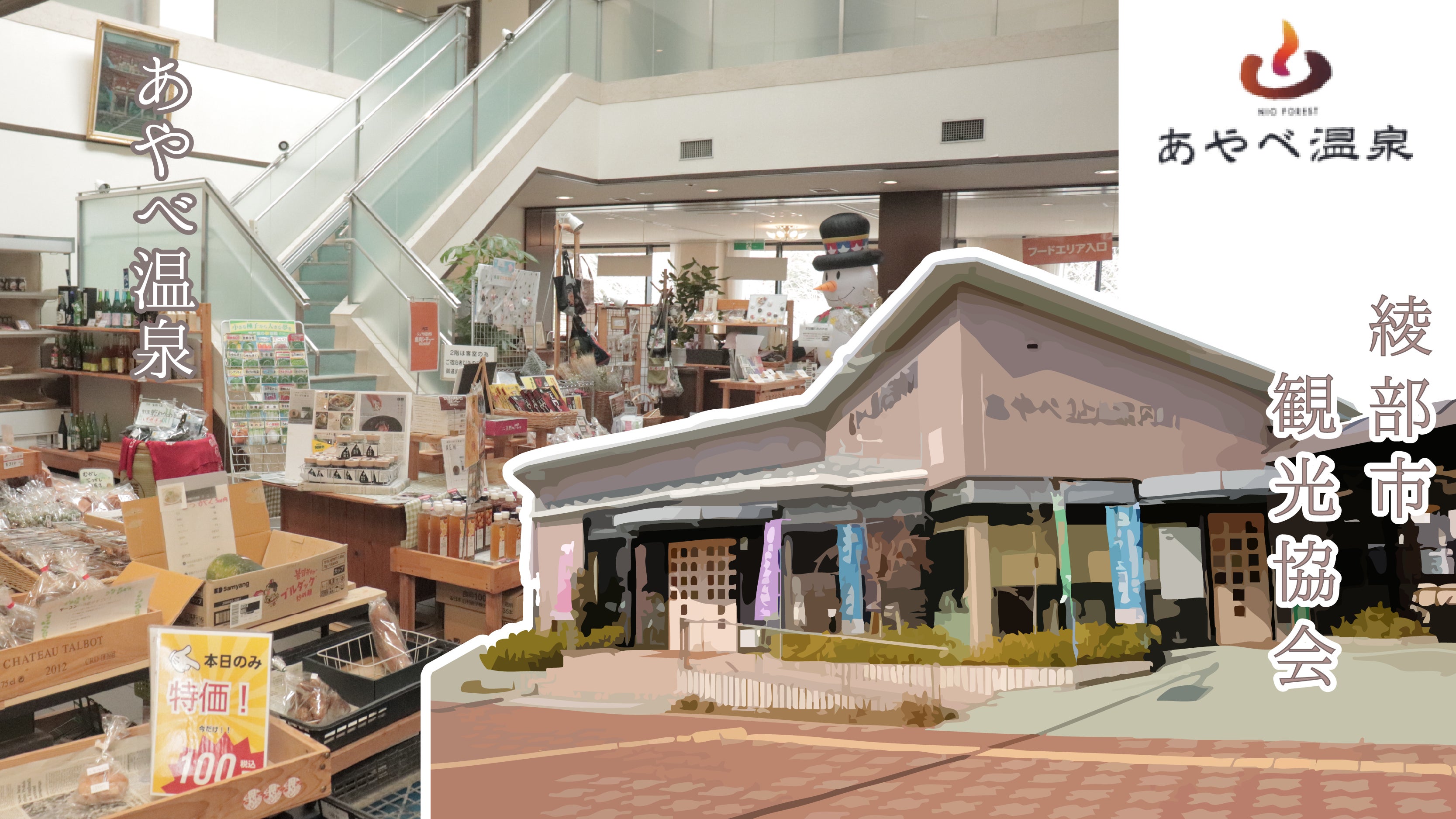 綾部市観光協会様の観光案内所とご紹介いただいたあやべ温泉