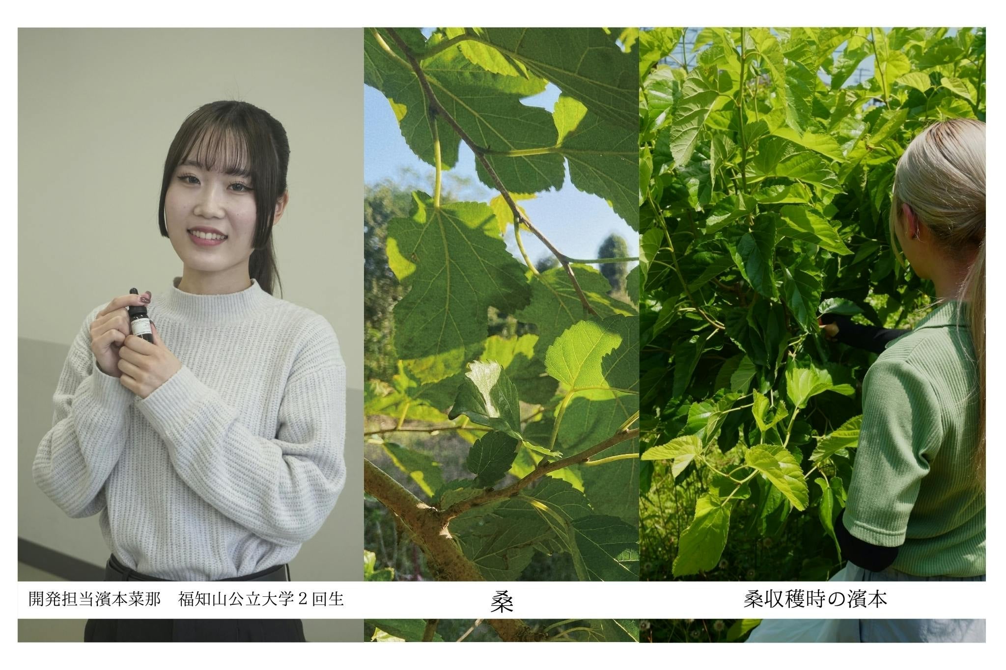 地元大学(福知山公立大学)の学生が、ブランドコンセプト考案や精油選び、桑の葉収穫など、開発の中心となって活躍をしました。