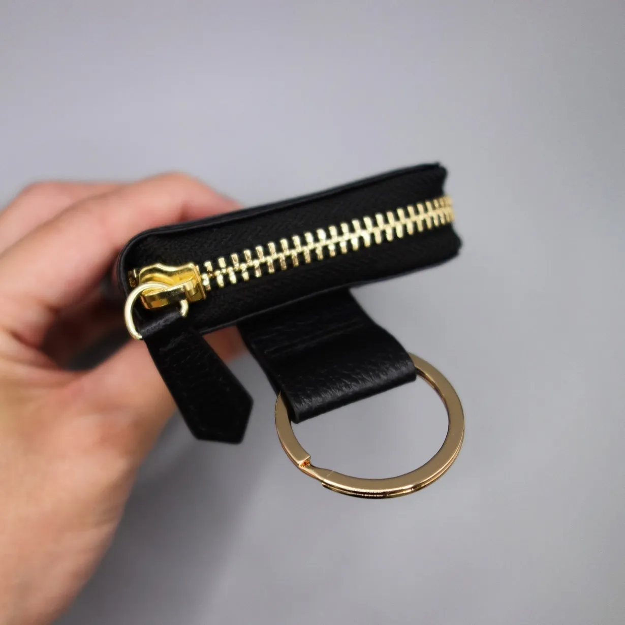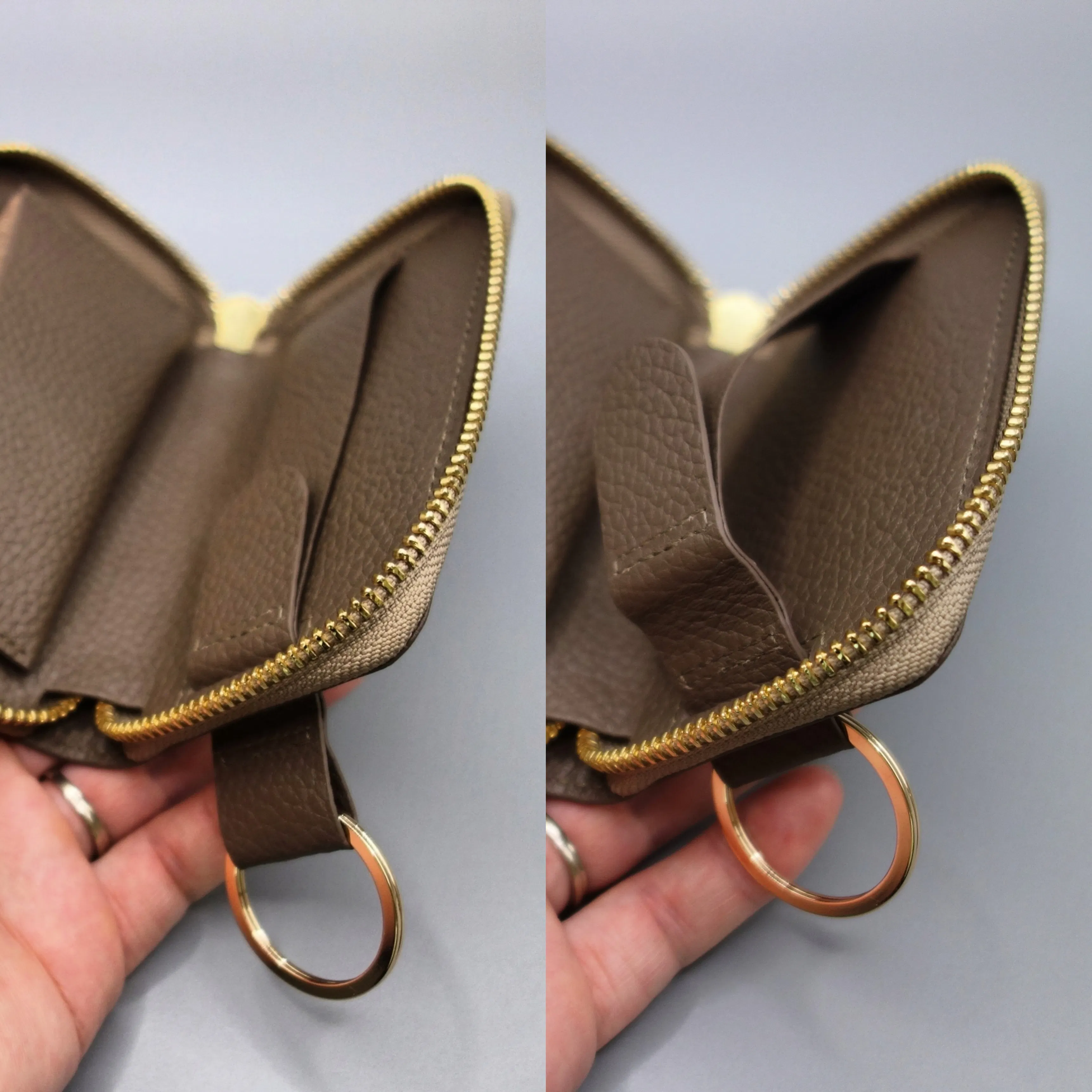 財布を引掛けた際に閉めたファスナーは上側にきます。