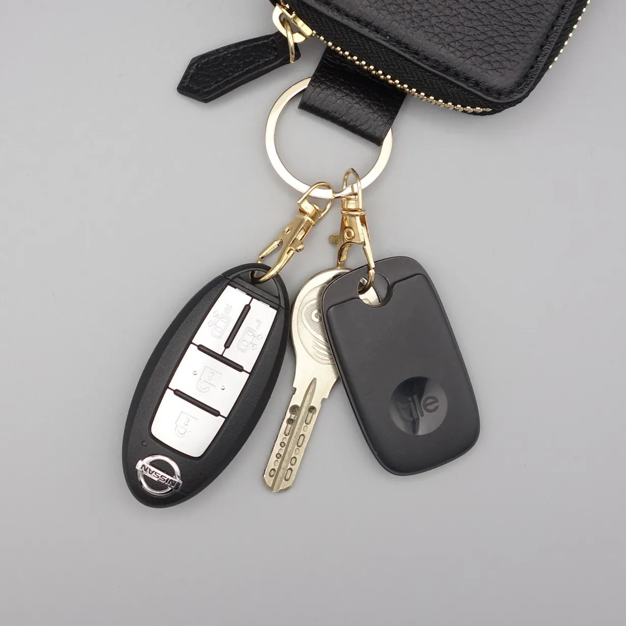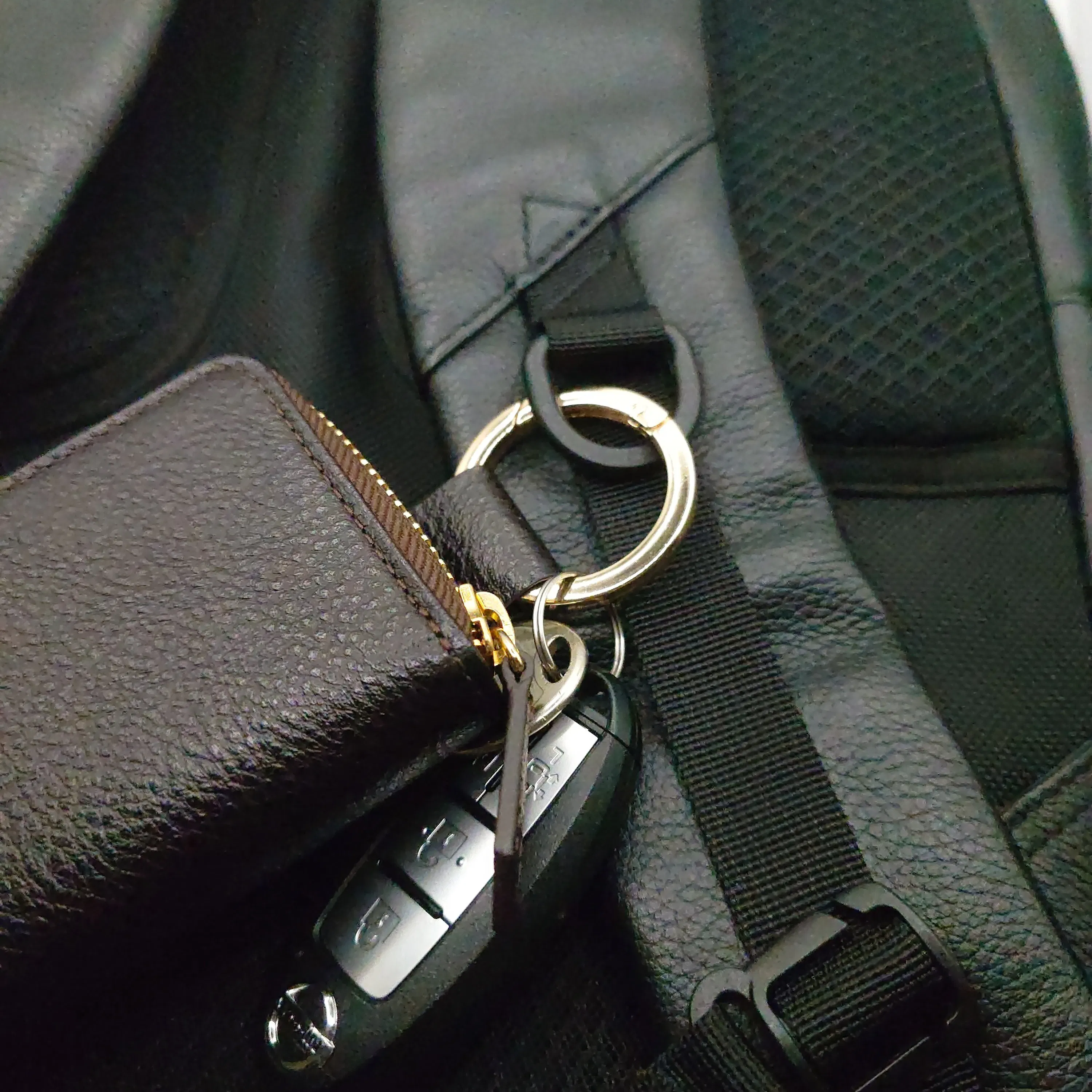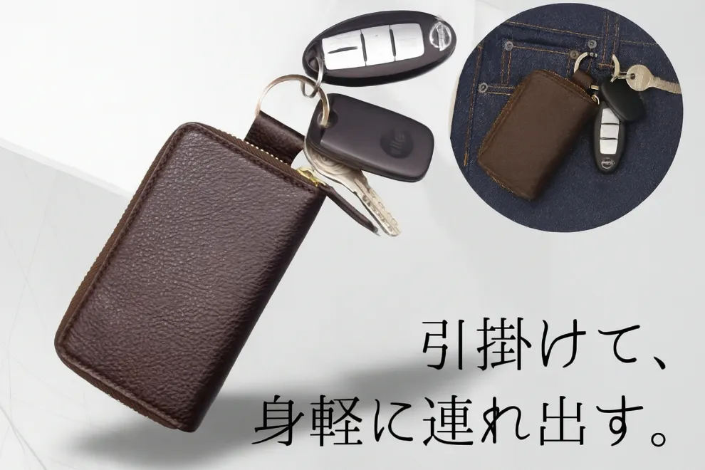 鍵や車のスマートキー、落とし物防止タグなどを引掛けることにより財布にキーホルダー機能を拡張できます。