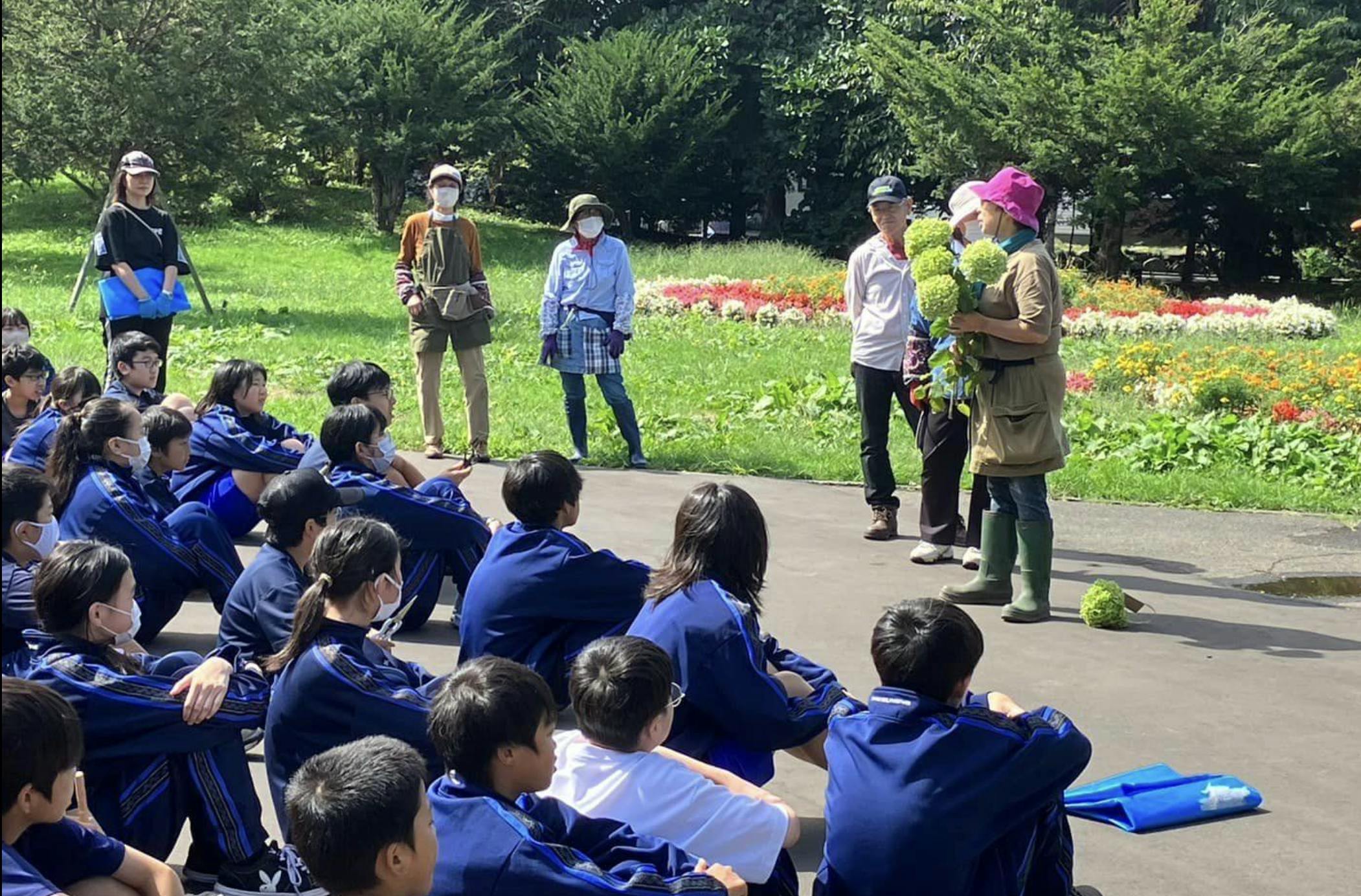 恵み野中学校の生徒たちとアナベル収穫祭