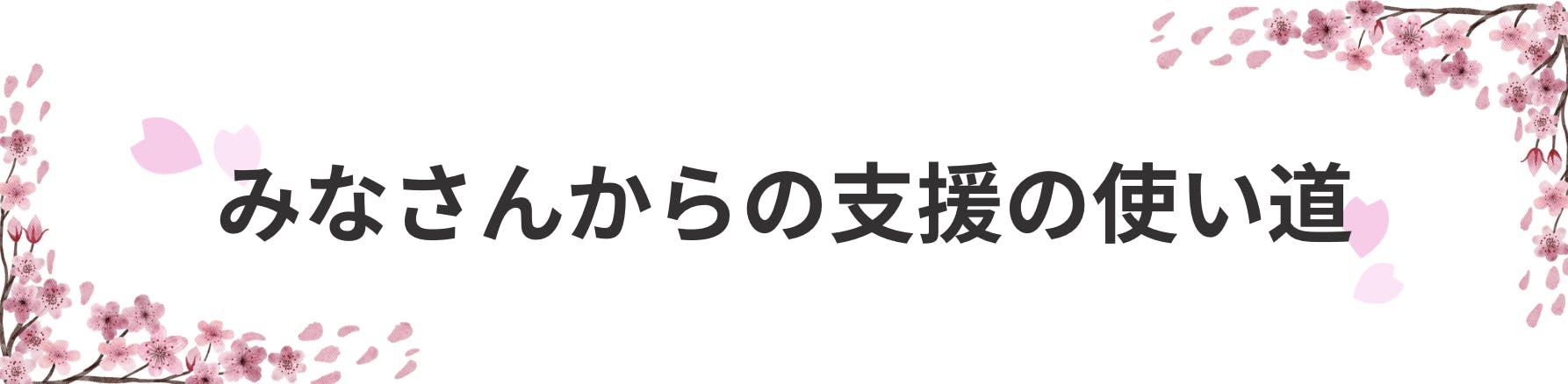 みなさんからの支援は、今年度実施する下記の事業に活用させていただくほか、さくら基金に積み立てることにより、来年度以降の桜の植樹・樹木伐採・維持管理を通じた目的の達成のために活用させていただきます。
