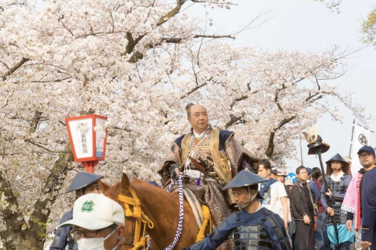 平成31年には俳優の平泉成さんに特別出演いただいた、春の桜まつりのメインイベント「家康行列」