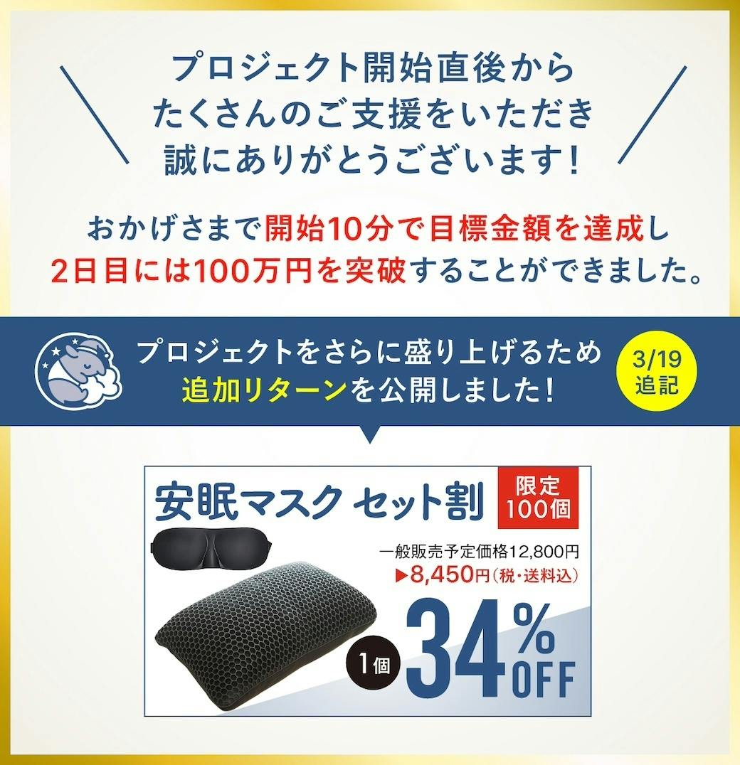 <安眠マスク>がセットになった特別なリターンをご用意いたしました。