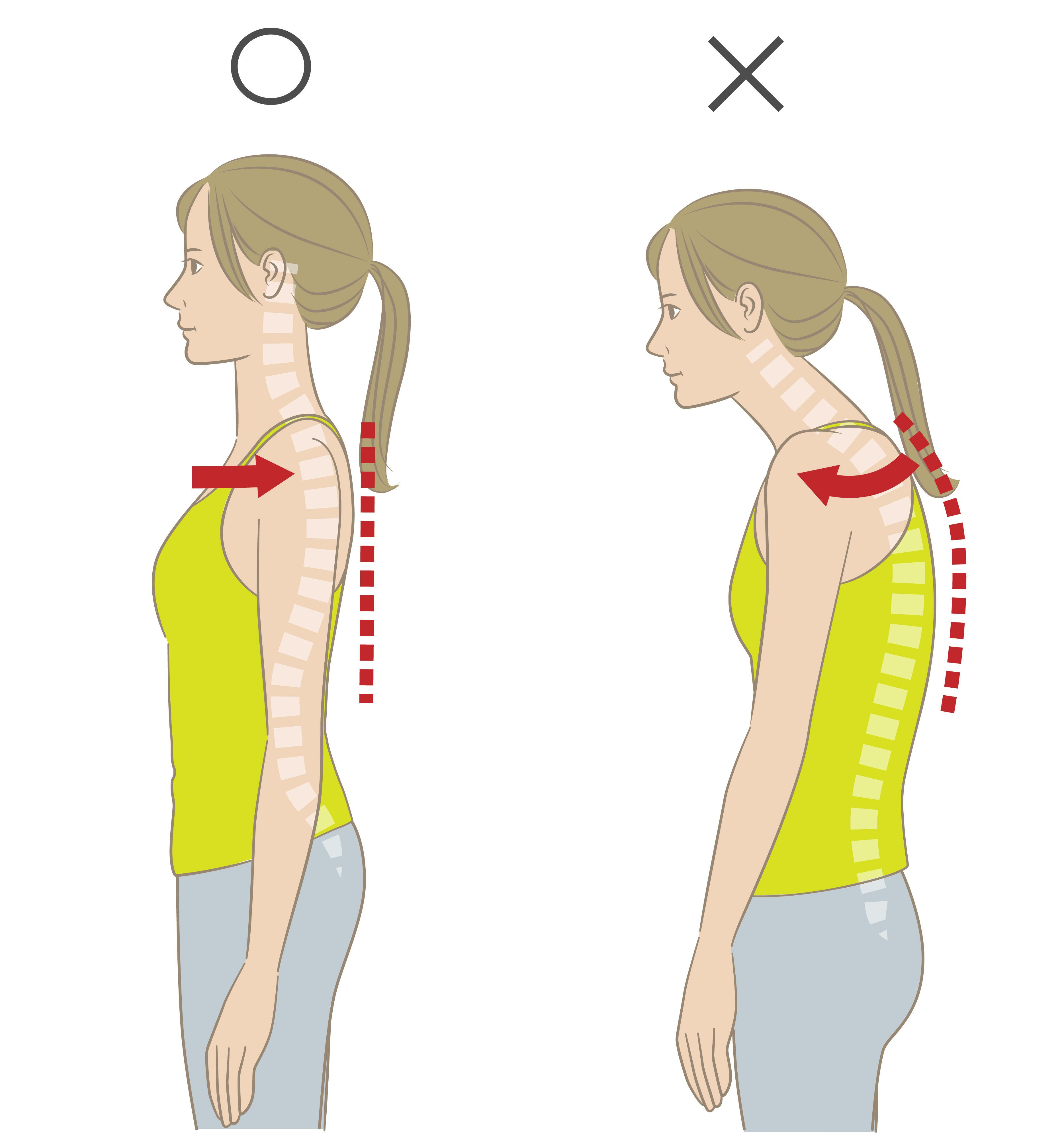 肩こりや将来の健康を守るために「姿勢を見直すこと」が大切であることを