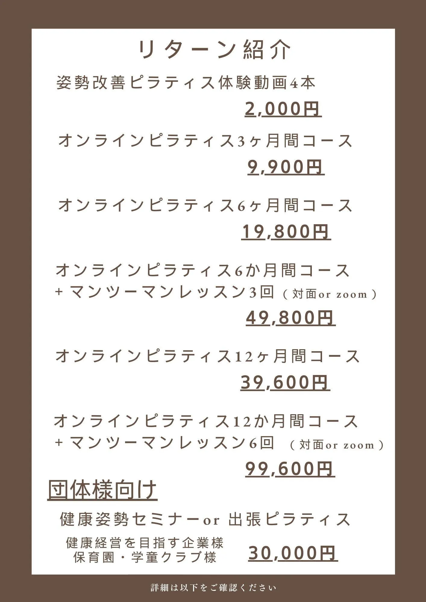 健康姿勢セミナーor出張ピラティス 30,000円