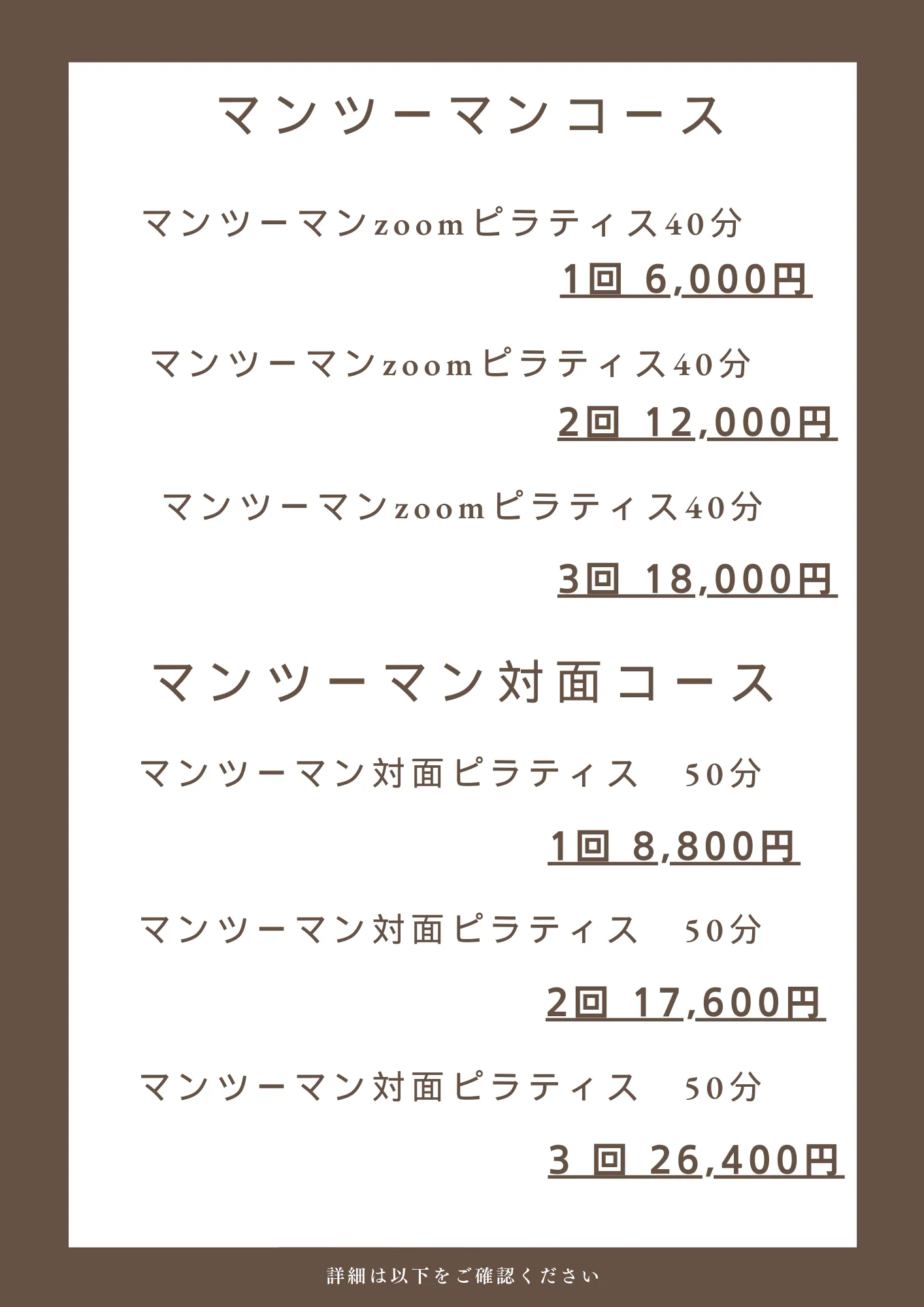 マンツーマンzoomピラティス40分 2回12,000円
