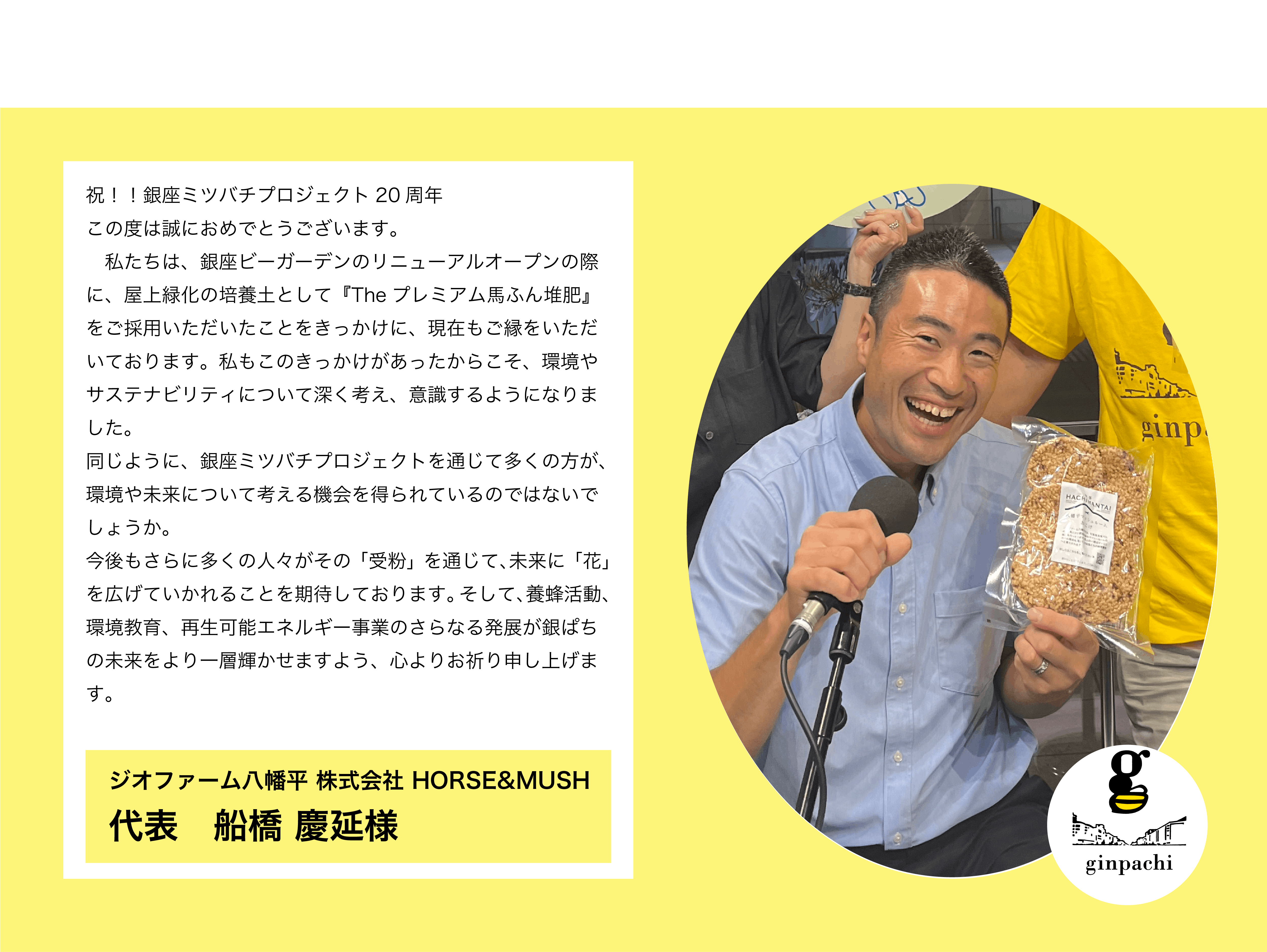 祝!!銀座ミツバチプロジェクト 20周年この度は誠におめでとうございます。