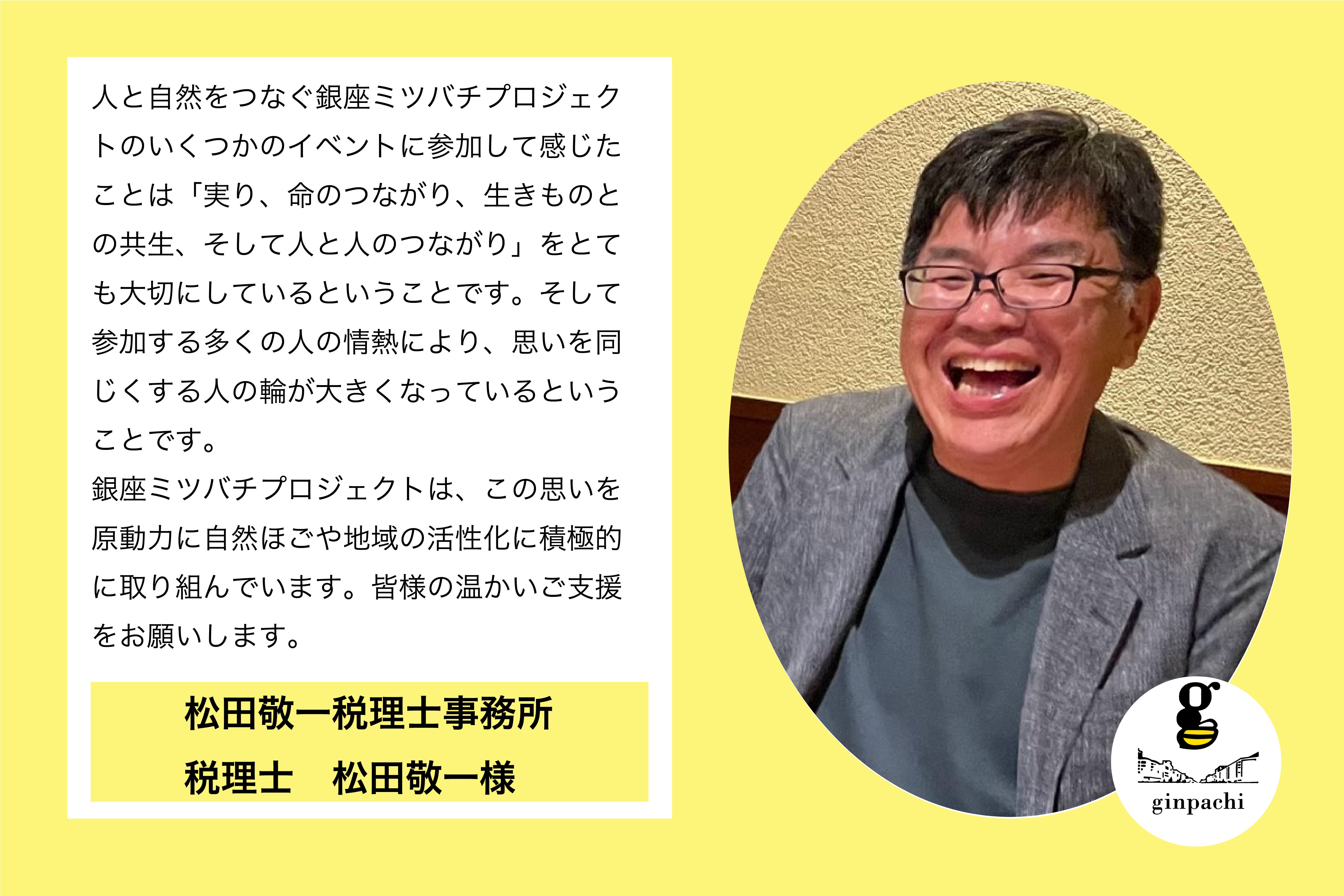 【応援メッセージ】認定 NPO法人キープ・ママ・スマイリング 理事長 光原ゆき様私たちは、全国の小児病棟で入院している子どもとご家族を支援するNPO法人です。ギンパチさんには支援物資の「付き添い生活応援パック」へ美味しいはちみつをご寄付いただき、全国の付き添うご家族の笑顔を支えていただきました。また私たちのオフィスは東銀座にあり地域の温かいつながりを感じています。銀座の街で育まれた貴重な恵みが、これからもたくさんの笑顔を生み出しますように!プロジェクトの成功を心よりお祈りしております。ーーーーーーーーーーーーーーーーーーーーーーーーーーーーーーーーーーー引き続き応援よろしくお願いいたします。銀座ミツバチプロジェクト