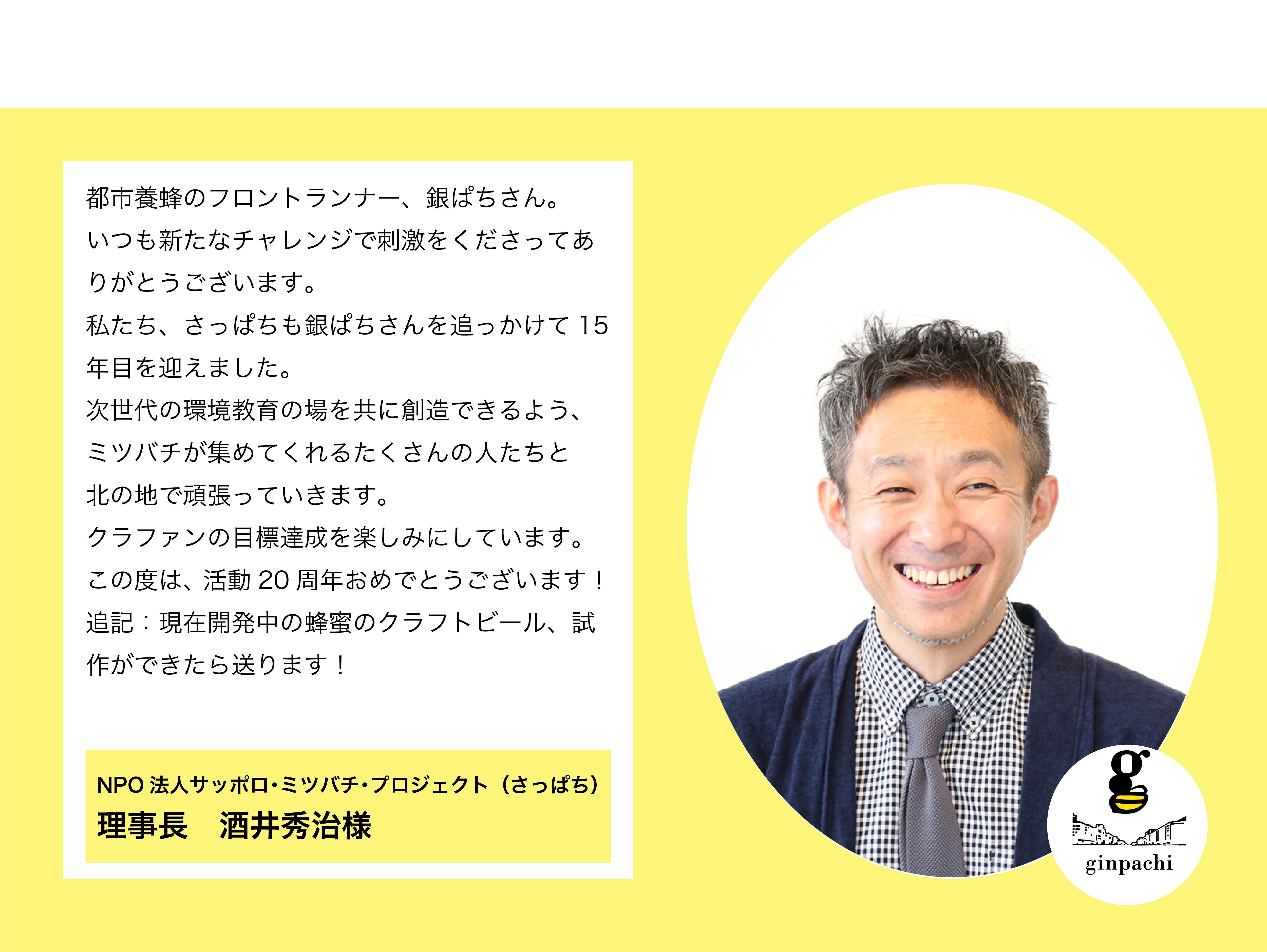 銀ぱち20周年クラファンリターン品「はちみつにまつわること」銀ぱちのはちみつ商品の充填や箱詰め、袋詰めなどは、各地の福祉作業所のみなさまの手によって行われています。銀ぱちはただ単にはちみつを採るだけでなく、環境問題の改善、社会課題の解決など、少しずつでもできることから取り組んでいます。今回のクラファンのリターン品になっているはちみつ全商品について、木製BOXは、国産杉端材をアップサイクルした特製BOX で、銀ぱちのメッセージとvisionが記載されています。住友林業グループの特例子会社 スミリンウッドピース(株)が製作 、障がい者の方が一つ一つ手作業で作ってくださっています。スリーブ作成とはちみつ瓶詰めや箱詰めは中央区日本橋の社会福祉法人信和会で、スティックへのはちみつの充填や袋詰めは北海道のほっとスペースこすもすにて、みなさまに丁寧に作業していただいてます 。たくさんのミツバチが力をあわせて作ったはちみつは、多くの人によって支えられ、みなさまのお手元に届きます。木箱入りのはちみつは贈答用に、小瓶やスティックはちょっとしたプチギフトにおすすめです。クラファン木箱のサイトはこちらhttps://camp-fire.jp/projects/812930/backers/guests/new?id=1330406https://camp-fire.jp/projects/812930/backers/guests/new?id=1330381クラファン小瓶のはちみつのサイトはこちらからhttps://camp-fire.jp/projects/812930/backers/guests/new?id=1330451クラファンはちみつスティックのサイトはこちらhttps://camp-fire.jp/projects/812930/backers/guests/new?id=1330426クラファン全体サイトはこちらhttps://camp-fire.jp/projects/812930/view
