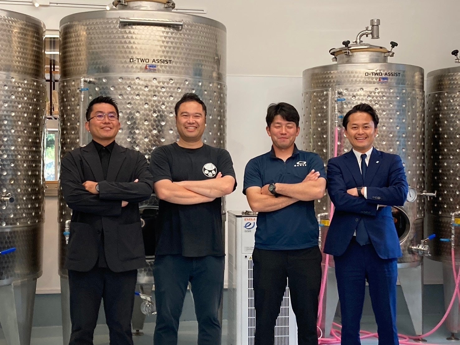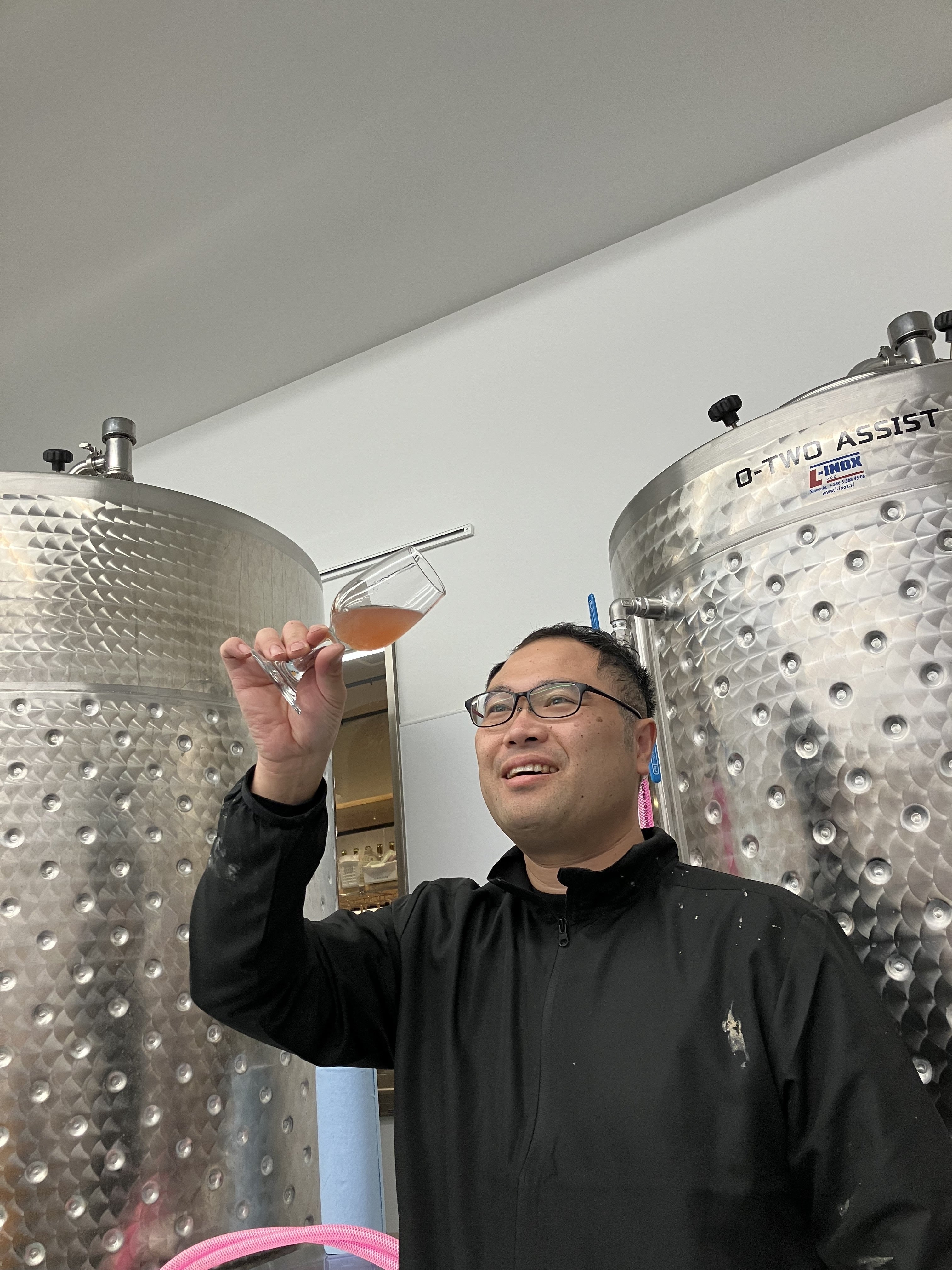 地元農家(株)百笑屋さんをはじめ、たくさんの「じざかなかま」の強力なサポートのお陰で、数々の困難を乗り越え、2024年2月に「糸島マスエワイナリ」が完成、2024年4月に果実酒製造免許を取得し、2024年11月ついに初めて自社醸造のワインを完成させることができました!