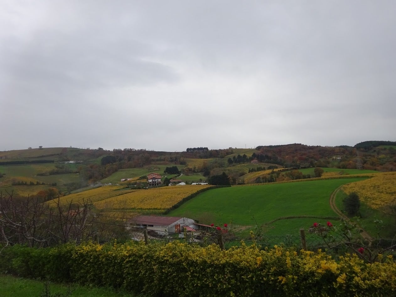↓スペインバスクのワイン畑。糸島と同様に湿潤な環境でした。