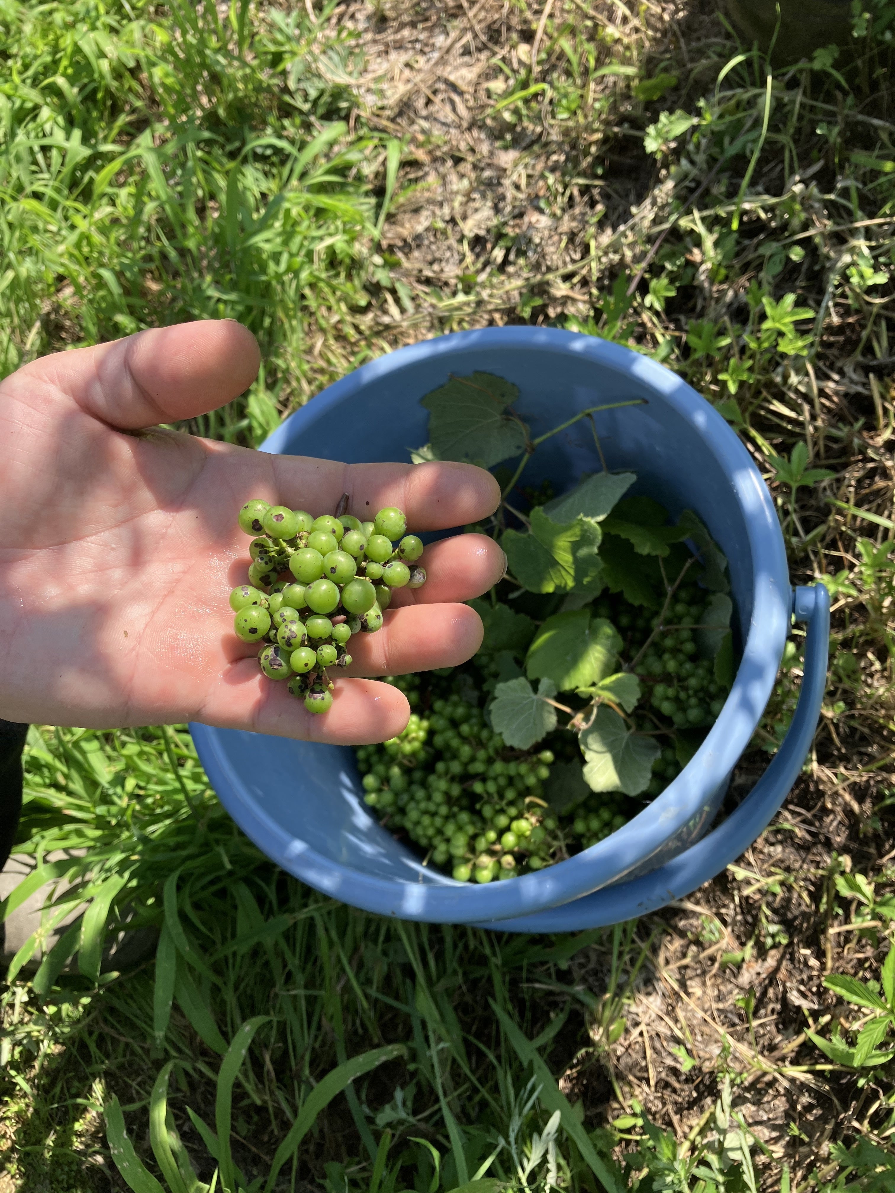 2025/06/27 17:30バケツ一杯に入っているブドウは病気にやられたブドウです。こういうブドウは未熟果となるので今のうちから落とすのですが、こうもたくさんあると心が折れます…来年こそは病気にやられないように雨よけをしっかり作って、良いブドウに育てるからね!と、一つ一つ供養しながらの作業でした。 もっと見る