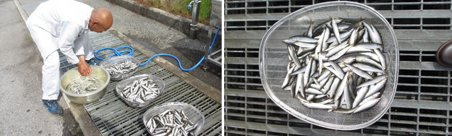 ★川からあげた”あゆ”をしばらく砂吐きをさせて、そのまま炊きます。