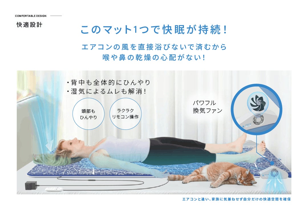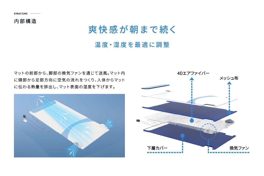 マットに流れる涼風が爽やかに熱、蒸れを除去してくれる次世代型寝具!