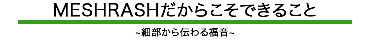 そんな時、メシュラーシュの商品が、自分自身の信仰生活の助けとしてだけではなく、大切な人へ福音を伝えるきっかけとしても用いられたら嬉しいです。