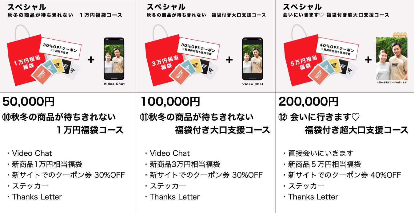 9月 リターン順次発送 / 新サイトにて新商品の販売開始