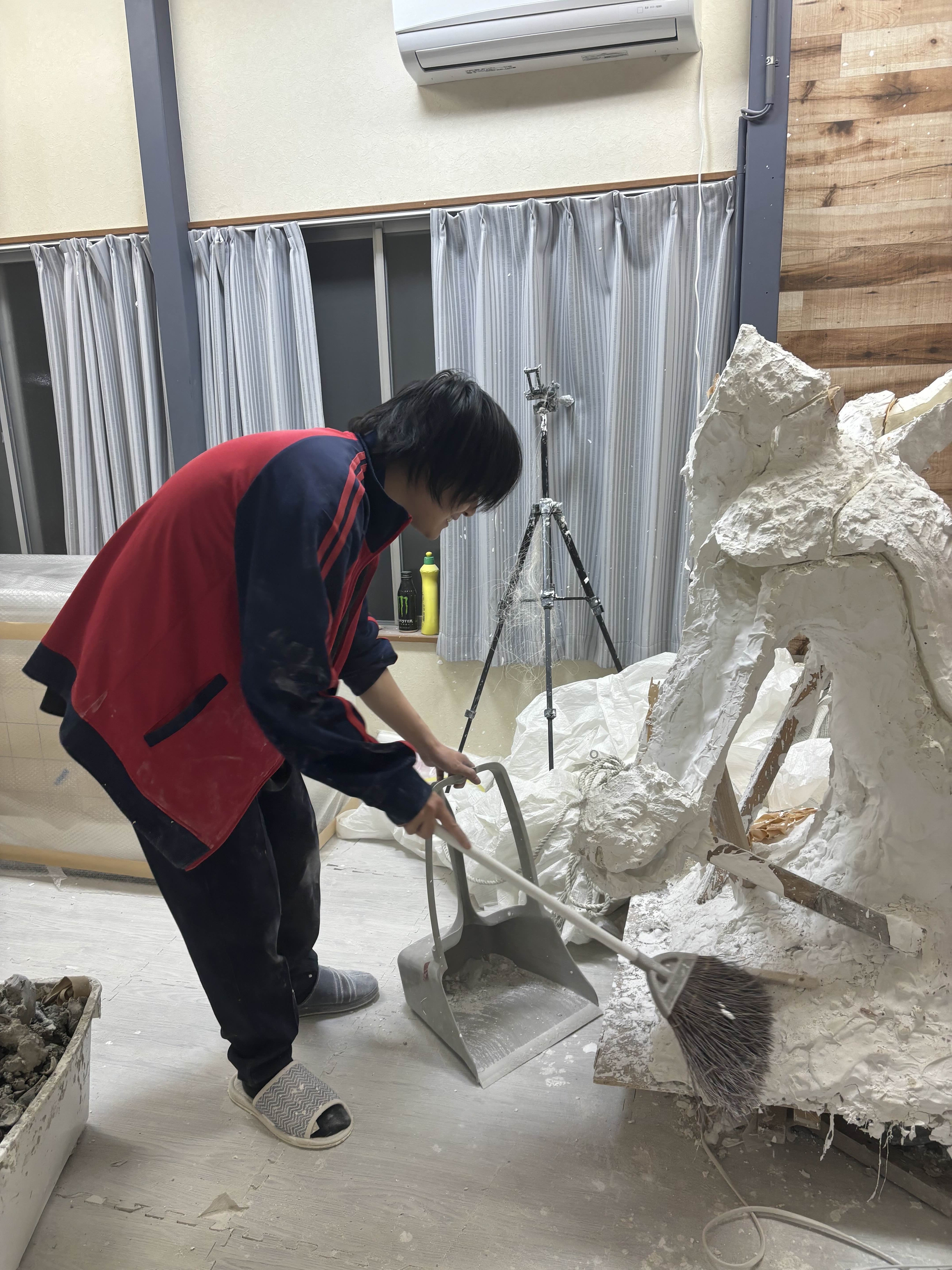 今日は作業の合間に作業部屋の掃除をしました。僕の作業は粘土やら石膏やら繊維やらでめっちゃ散らかるし粉まみれになるので、定期的な掃除が必要です。