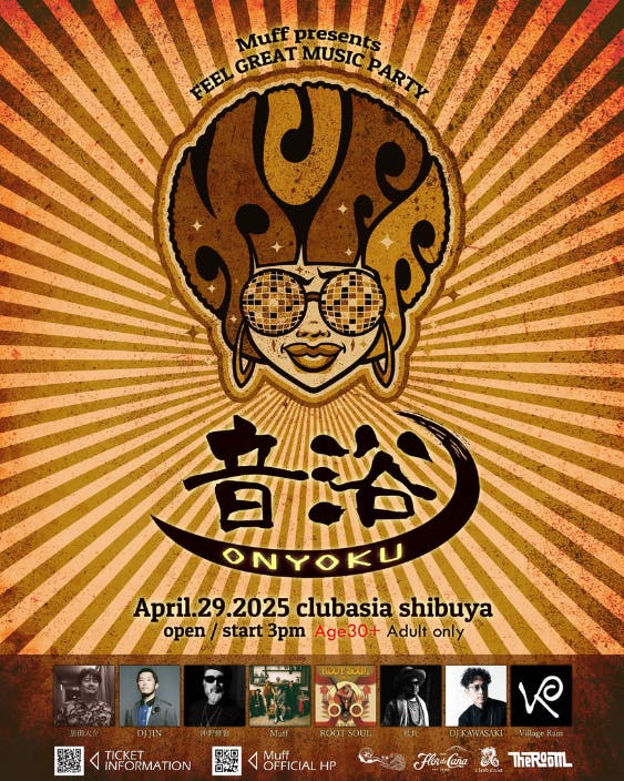 2025/04/27 00:18さて、SNS等を中心に告知をさせて頂いておりますが、皆様にご支援頂きましたMuff 史上初のクラウドファンディング企画によるオトナの極上クラブイベント、まもなく開催日が迫ってまいりました!!!!!4月29日祝日㈫場所は渋谷clubasiaさんにて決行致します!!そして今回の極上DJ’s、それはそれはもう垂涎もののアーティスト達が参戦してくれました!ブッキングには会場と同じく渋谷THE ROOMさんにかなり手厚くご協力を頂き、実現することが出来ました。どちらも歴史ある渋谷のクラブシーンを牽引してきた老舗であり、名だたるレジェンド達が出演する超ビッグなお店でございます。この場を借りてお礼申し上げます。ご協力、誠にありがとうございます!!!今回のイベントタイトルについては、ほんとーに色々考えたんですが... 音を浴びると書いて、音浴(おんよく)と名づけました。そして我々Muffもニューアイコン作っちゃいまして、マフロガールも爆誕しました!!ちなみに今回のリターンにもありました、出演者全員のサイン入りポスターはコチラでございます。当リターンをご支援頂いた方々には、イベント終了後にご郵送にて出演アーティスト全員の直筆サインを入れたポスターをお送りさせて頂きます!イベントの詳細はこのようになっています。DATE 2025/04/29 OPEN/START 15:00 TICKET ¥4,000 + 1 drink feeAGE 30+ ONLY※ご入場の際に年齢確認をさせて頂きます コチラも、クラファンページでも記述した通り、デイイベントでの開催になりました!エントランスにて年齢確認を致しますので、会場には早めにお越し頂けますとスムーズにご入場いただけるかと思います。また、バックステージパスが含まれたリターンをお持ちの方は【絶対に無くさないで】くださいませ。当イベント終了後に、今回ブッキングサポートをしてくださった渋谷THEROOMさんにて関係者限定アフターパーティーを開催します。バックステージパスはその入場券となりますので、必ずお持ちいただけますと幸いです。さて、それでは皆様の温かいご支援により実現致しました、珠玉の出演アーティスト達をタイムテーブルと合わせ、改めてご紹介致します!!いやー...ホントにすごいです。このアーティスト名を眺めるだけで、なんだかもう楽しいです笑Main Floorはもちろん、Bar Floorも相当に楽しい空間になるのは間違いないですね!!そして今回は、渋谷「club asia」様「THEROOM」様に大変に手厚いご協力を頂きましたが、さらにもうひとつ、今回ご協力いただきましたサポート様を紹介させてください。地球環境に優しいサステナブルな生産方法にこだわり続け、1890年から5世代も続く歴史ある名家が100%再生可能なエネルギーで醸造するまさに【極上のラム】を提供し続ける「フロール・デ・カーニャ」様。今回なんと当イベントに協賛して頂き、当日限定極上ドリンクをご提供して頂きます!!是非とも味わって、楽しんで、踊りまくっていただけますと、我々も嬉しい限りでございます!さて、イベント当日まであと48時間となりました。あとはトコトン楽しんで頂くのみです!!!!皆様当日、会場にてお会いしましょう![会場] club asia (渋谷)東京都渋谷区円山町1-8TEL : 03-5458-2551 Supported by Flor de Caña・THE ROOM もっと見る