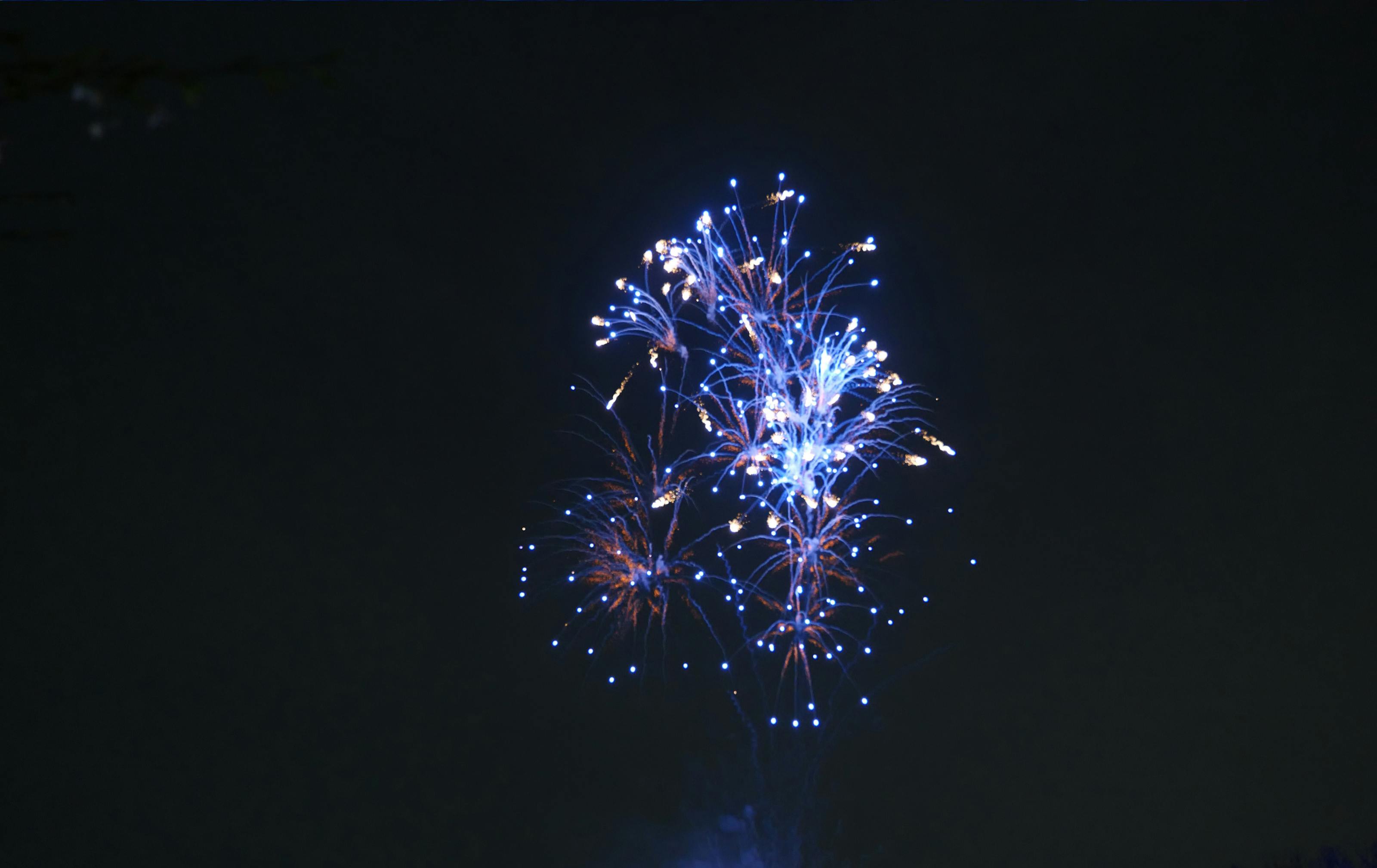 ・芹ケ谷公園にて青い花火打ち上げ(19:00~約7分)