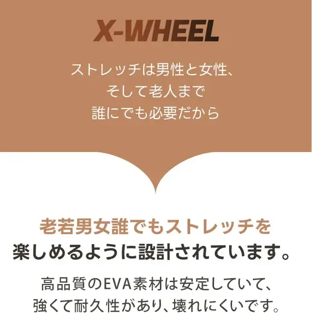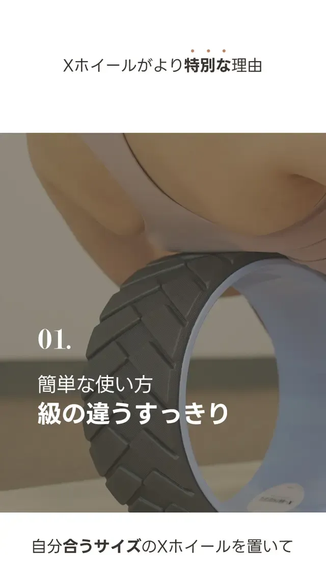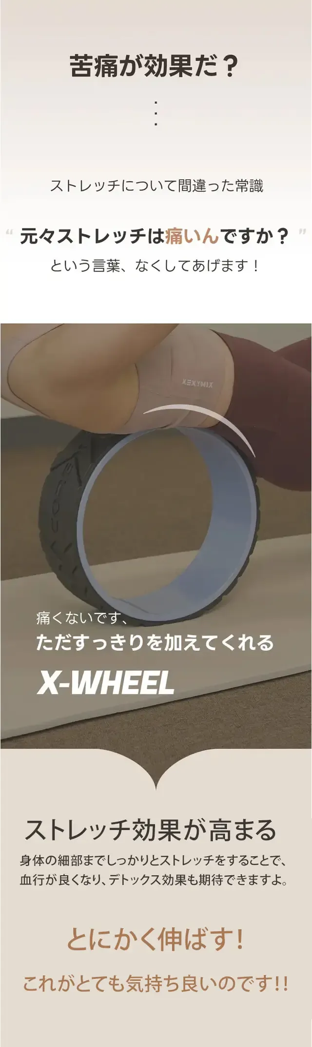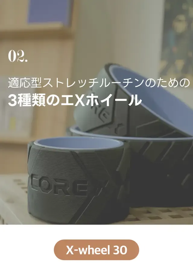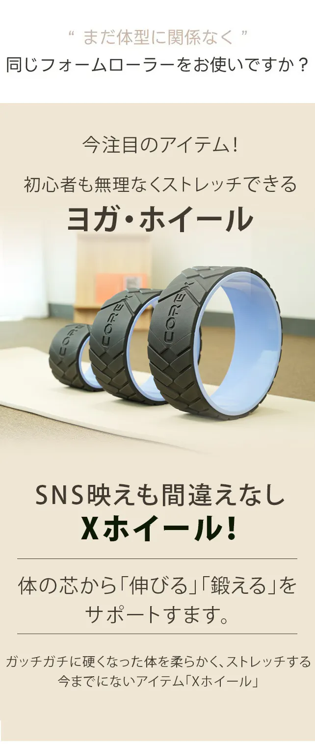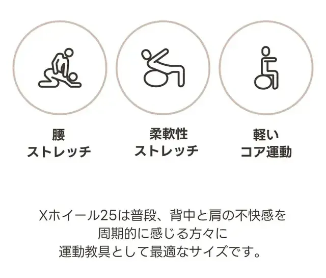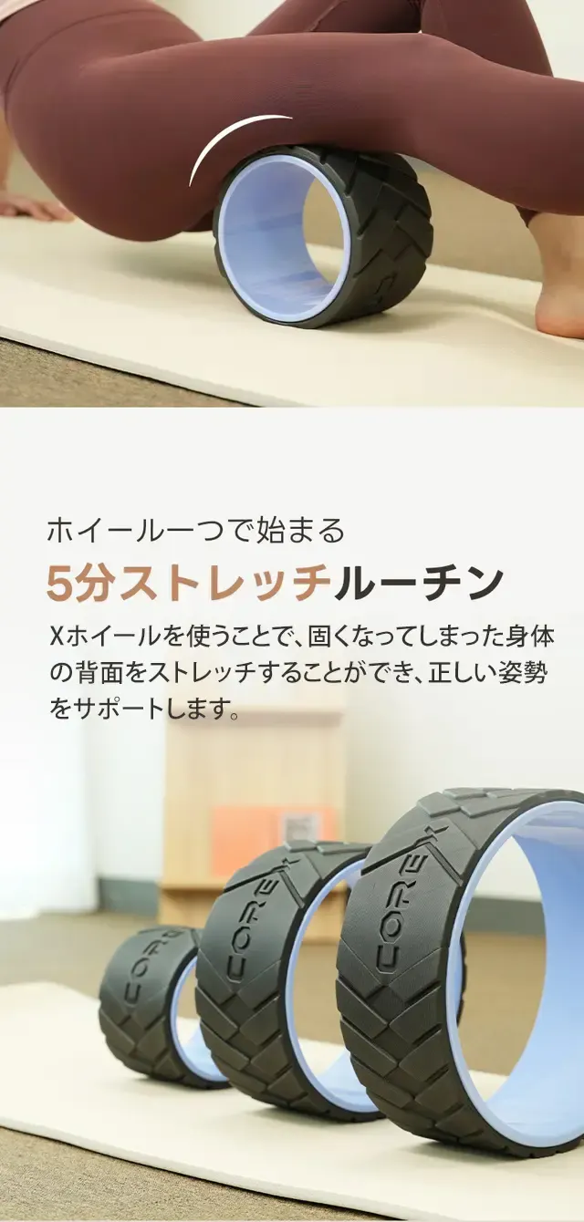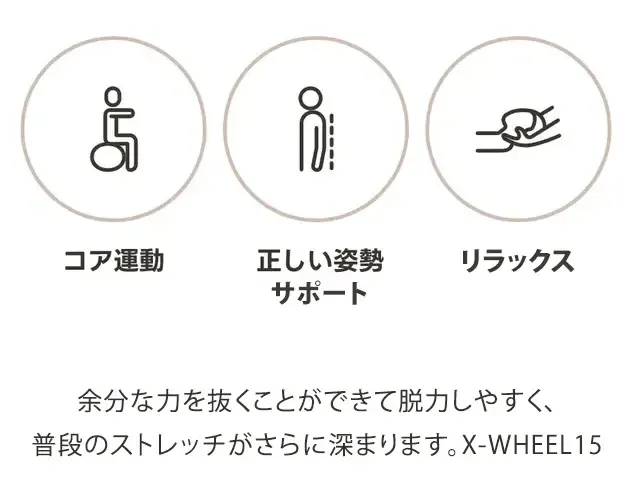 Xホイールを使うことで、固くなってしまった身体の背面をストレッチすることができ、姿勢をサポートすることができます。
