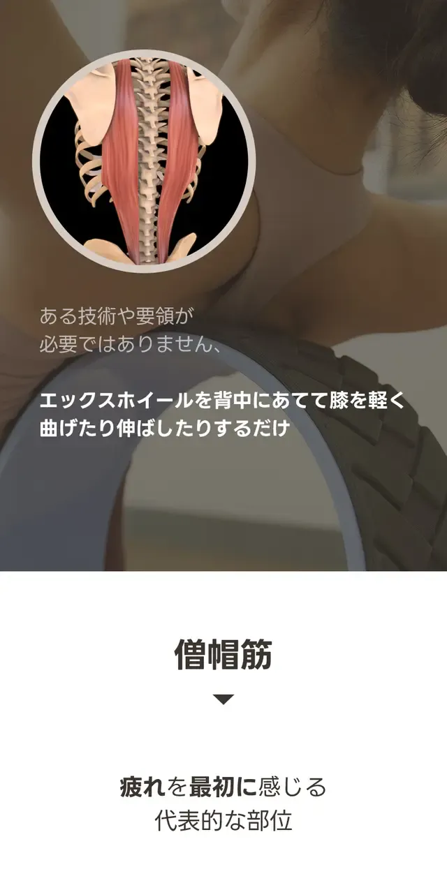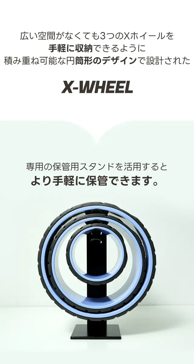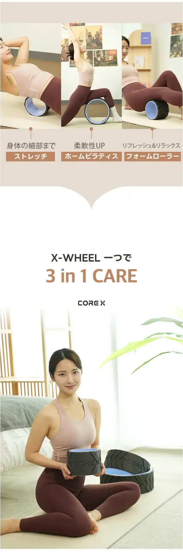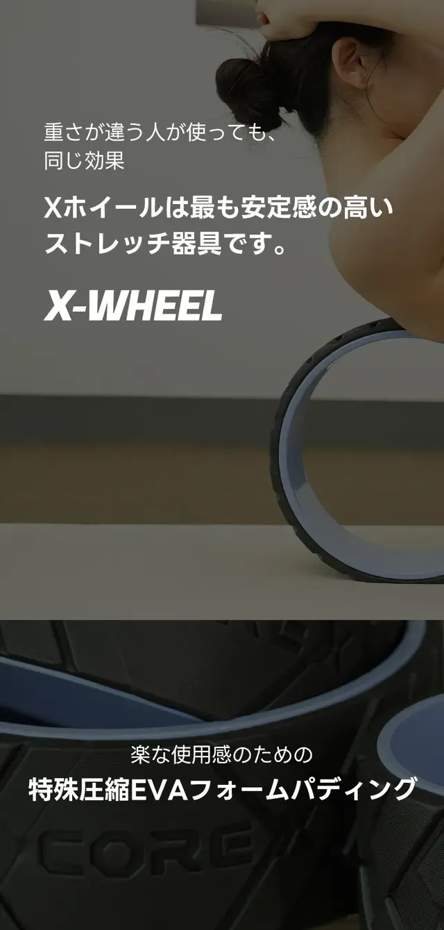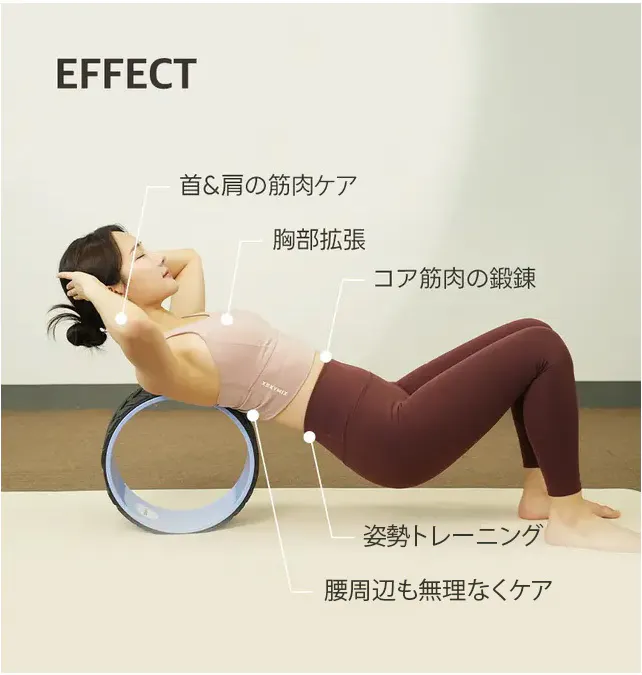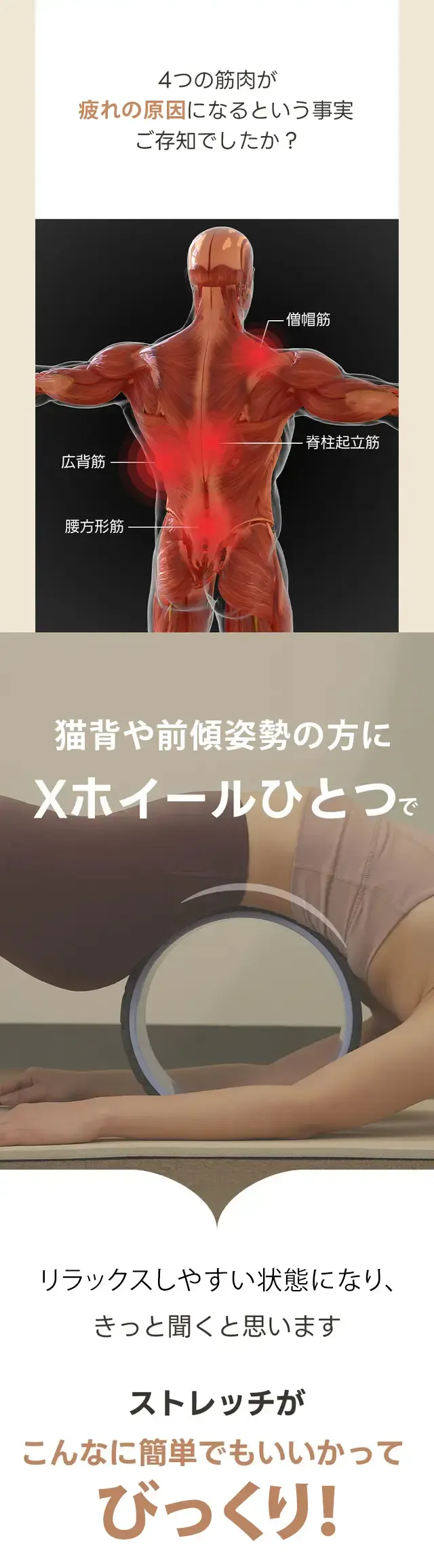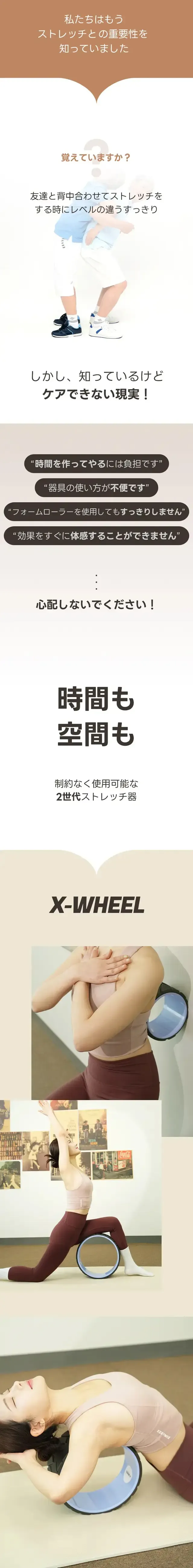 Xホイールを使うことで、固くなってしまった身体の背面をストレッチすることができ、姿勢をサポートすることができます。