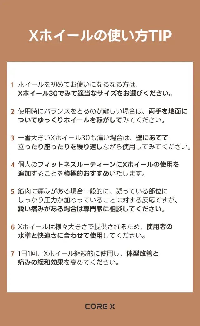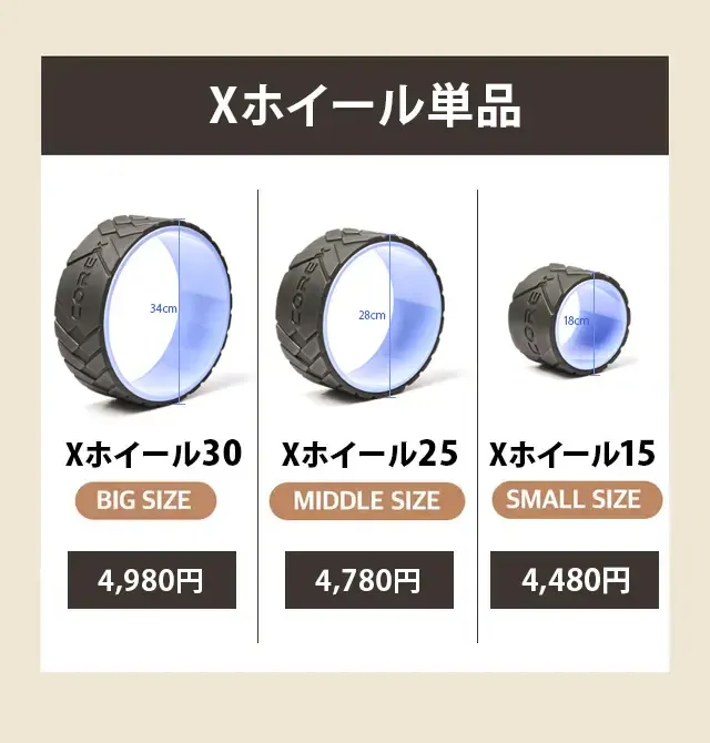 Xホイール30、Xホイール25、Xホイール15の3類から身体に負担がないサイズを使ってみてください。