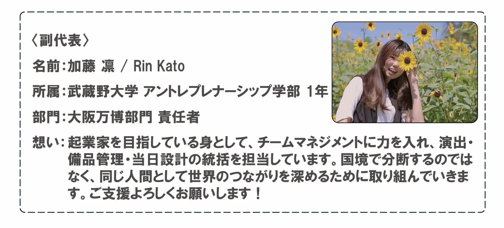 所属:武蔵野大学 アントレプレナーシップ学部 4年