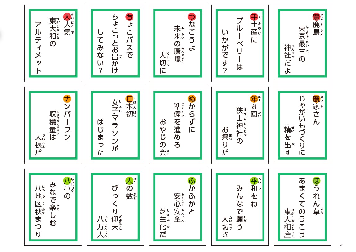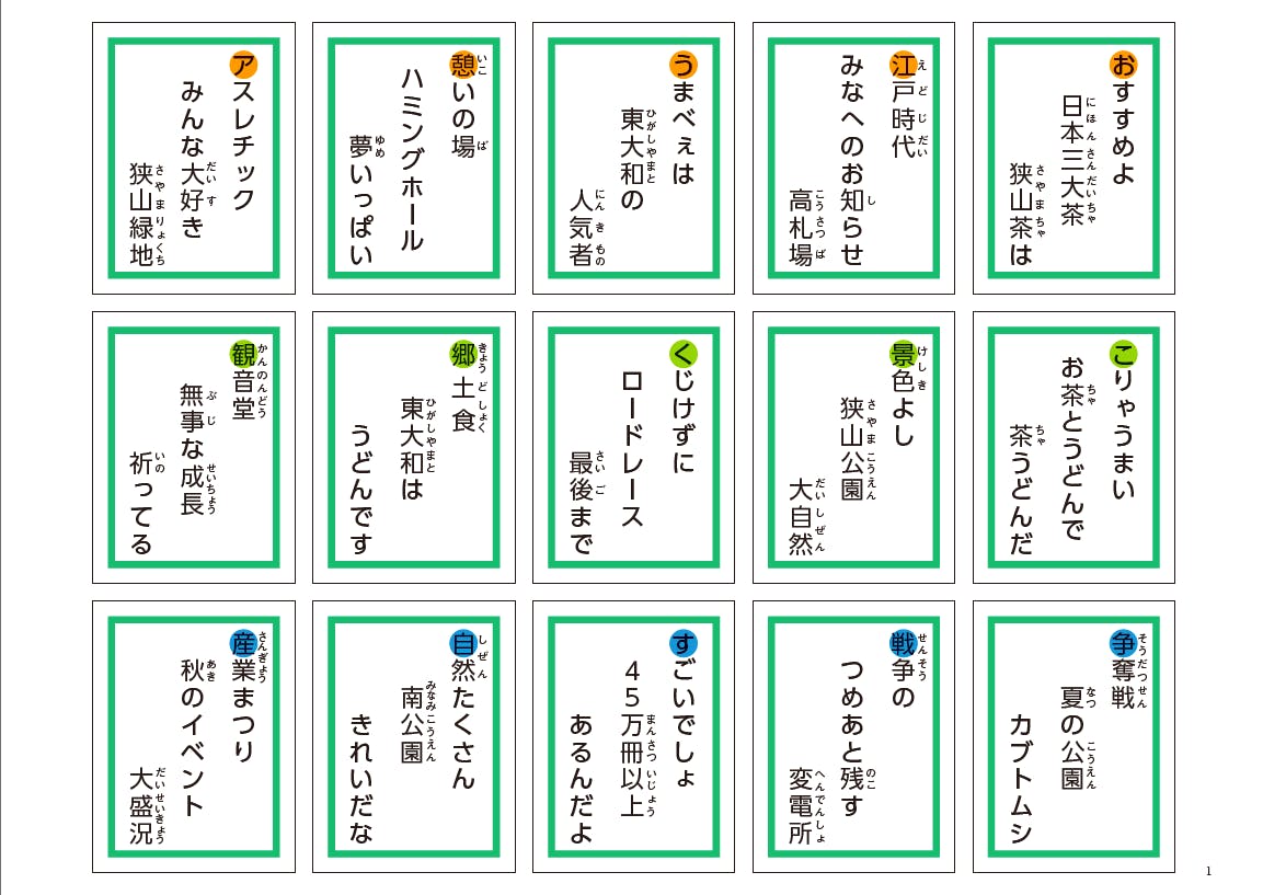 市の魅力のつまった「東大和市郷土かるた」を市外の方々へ配りたい!