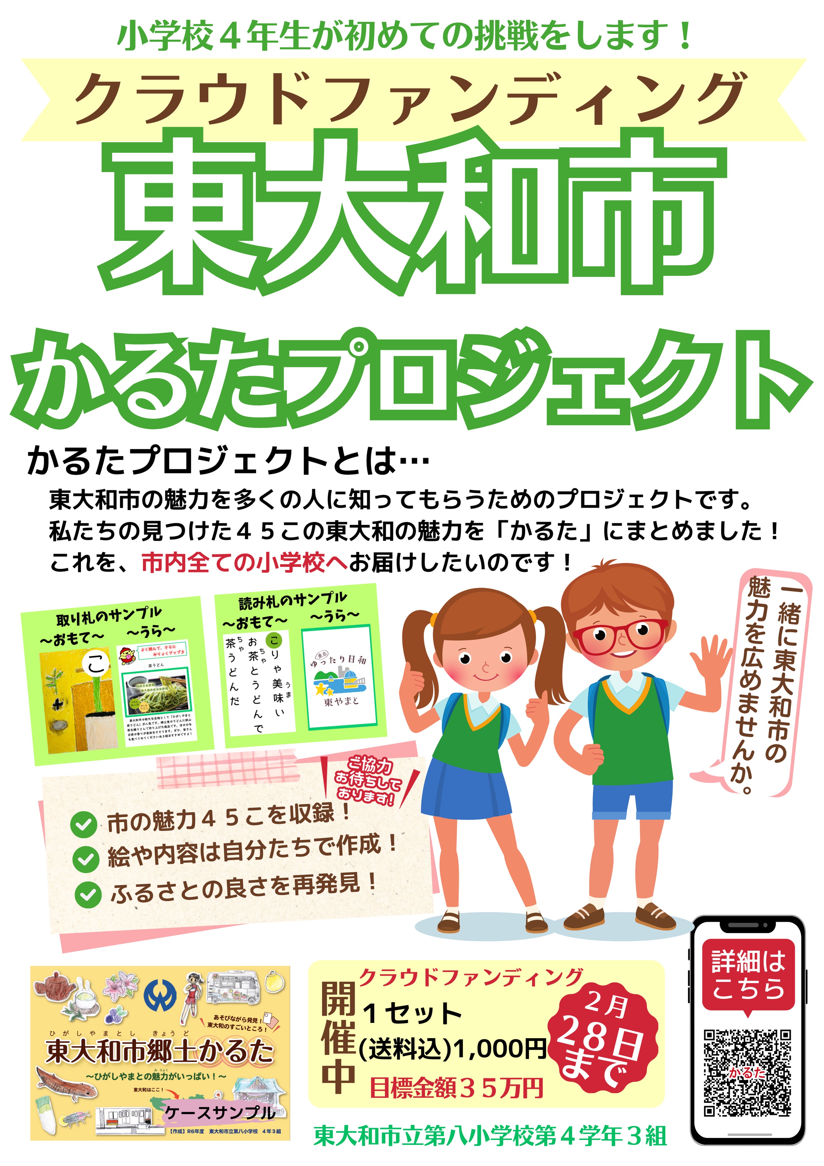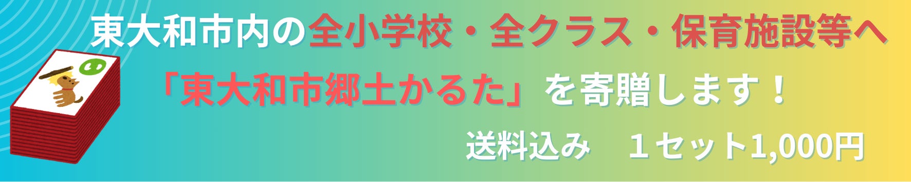 市の魅力のつまった「東大和市郷土かるた」を、市内の小学校の各クラス、保育施設へ配りたい!