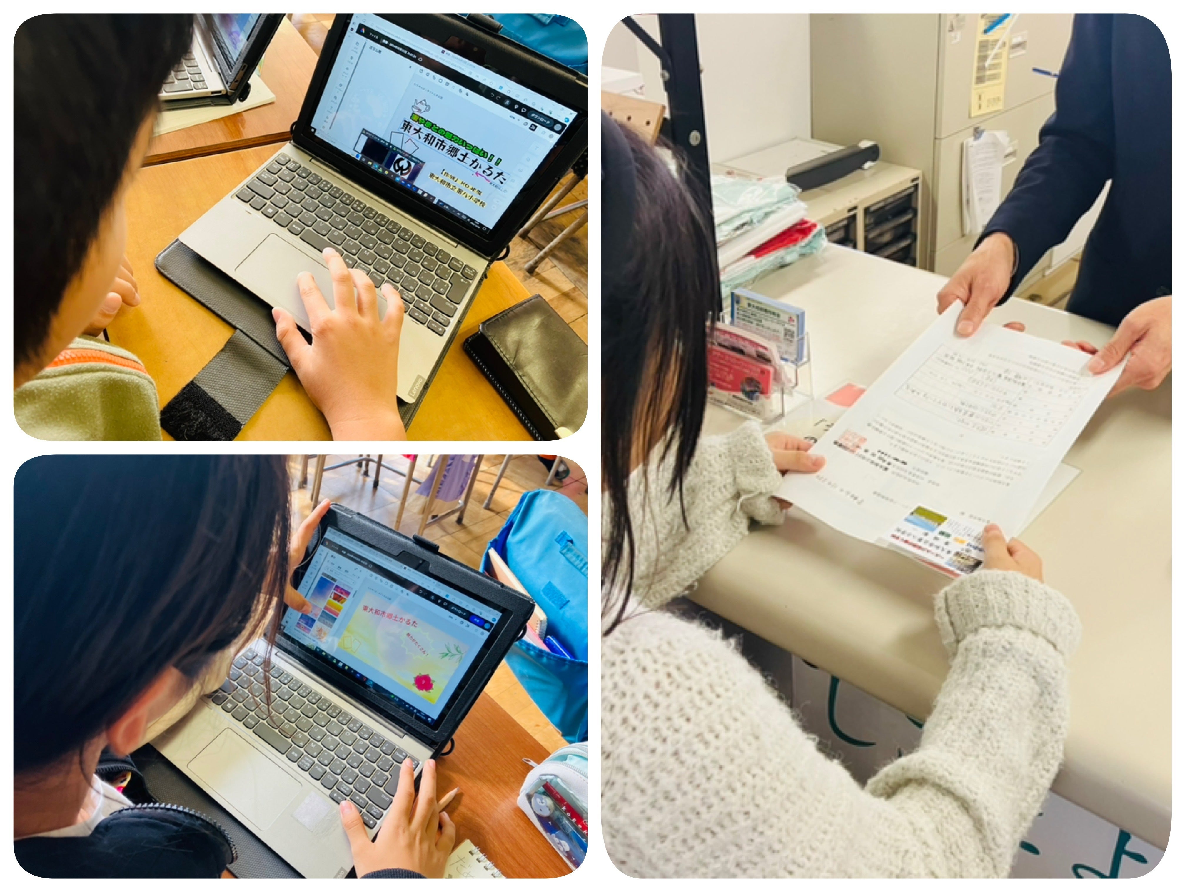 2025/02/10 23:06個人ごとに、ポスターを貼りたい場所を考え、「どのようにその施設の方にお願いすれば良いか。」を皆で話し合いました。そして、「台本」を作成し、練習をして保護者の方と向かいます。「ちゃんと引き受けてくれました!」「本社に聞かないとダメみたい。」「明日ももう一回行ってきます。」など、様々な声が聞かれました。これもまた学習の一部。社会の仕組みに触れ、一歩ずつ成長しています。そんな中、ランドセルに貼り付け、歩く広告塔になる子も。この発想には驚きました。真似する子も出てきて、少し異様な雰囲気でしたw。でもそんな姿に、このプロジェクトへの思いが詰まっているような気がしました。10日月曜日、朝登校すると、すぐに今の寄付金の状況をみんなで確認していました。約2日間で100人以上の協力をいただけたことに「感謝」の気持ちをもち、さらにやる気が生まれたようでした。そして、ここまでの振り返りをし、簡単に今の気持ちを書きました。広報活動はそれだけではありません。お昼の放送で活動を報告したり、全校児童のパソコンに情報を発信したり、「できることは何か。」をよく考え行動しています。祝日後の登校日がとても楽しみです!まだまだ、クラファン継続中です!どうぞよろしくお願いいたします! もっと見る