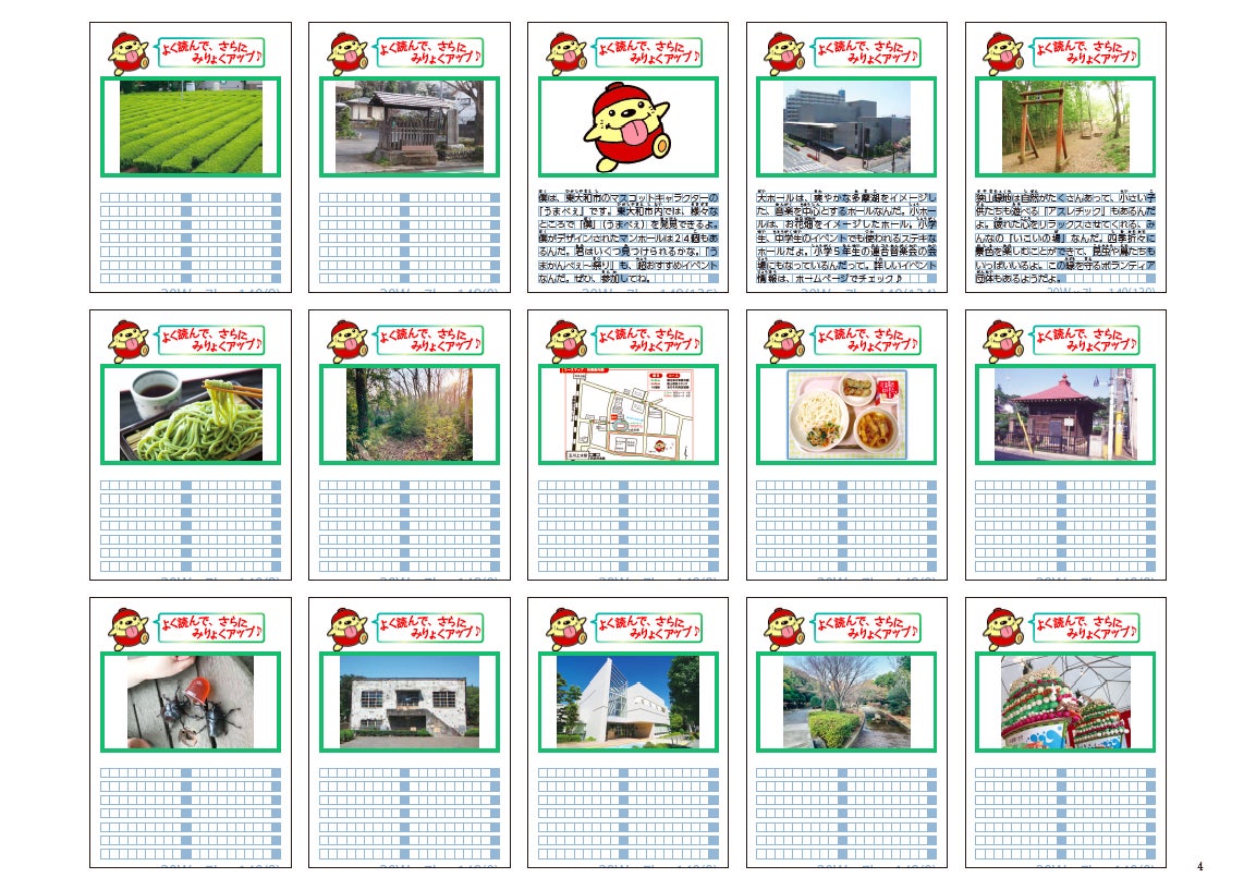 そして、東大和市の魅力をさらに深めてもらうために、取り札の裏には「説明ページ」として、絵札の参考にした場所の写真や参考資料を載せることにしました。