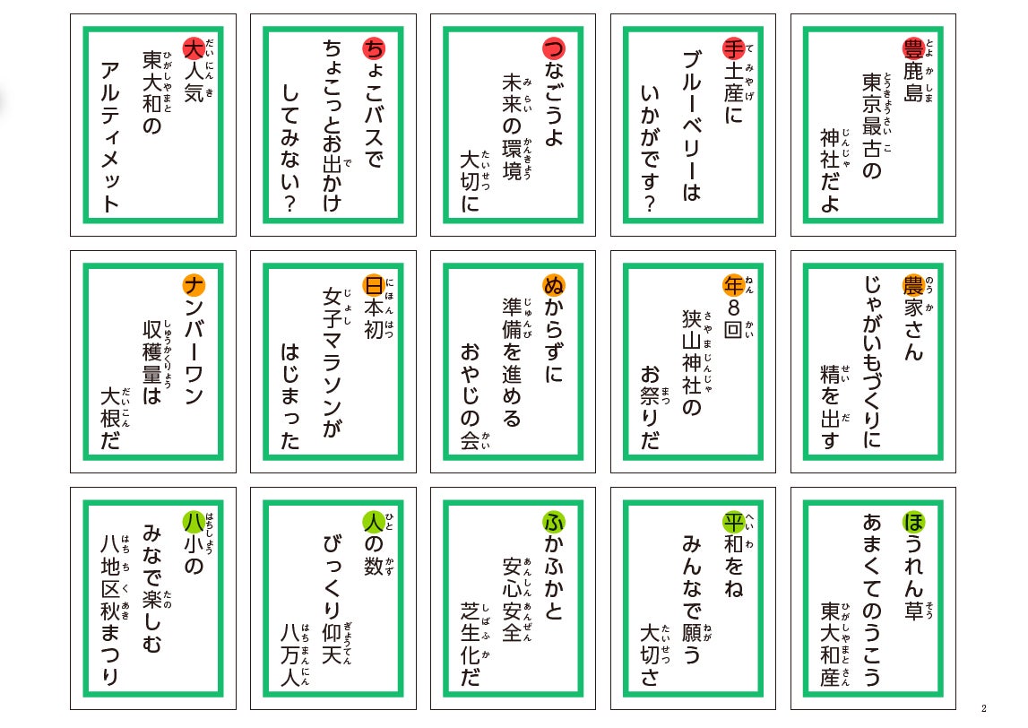 どなた様にも「東大和市郷土かるた」をお届けいたします。ご家族やお友達と一緒に楽しんでくださいね。