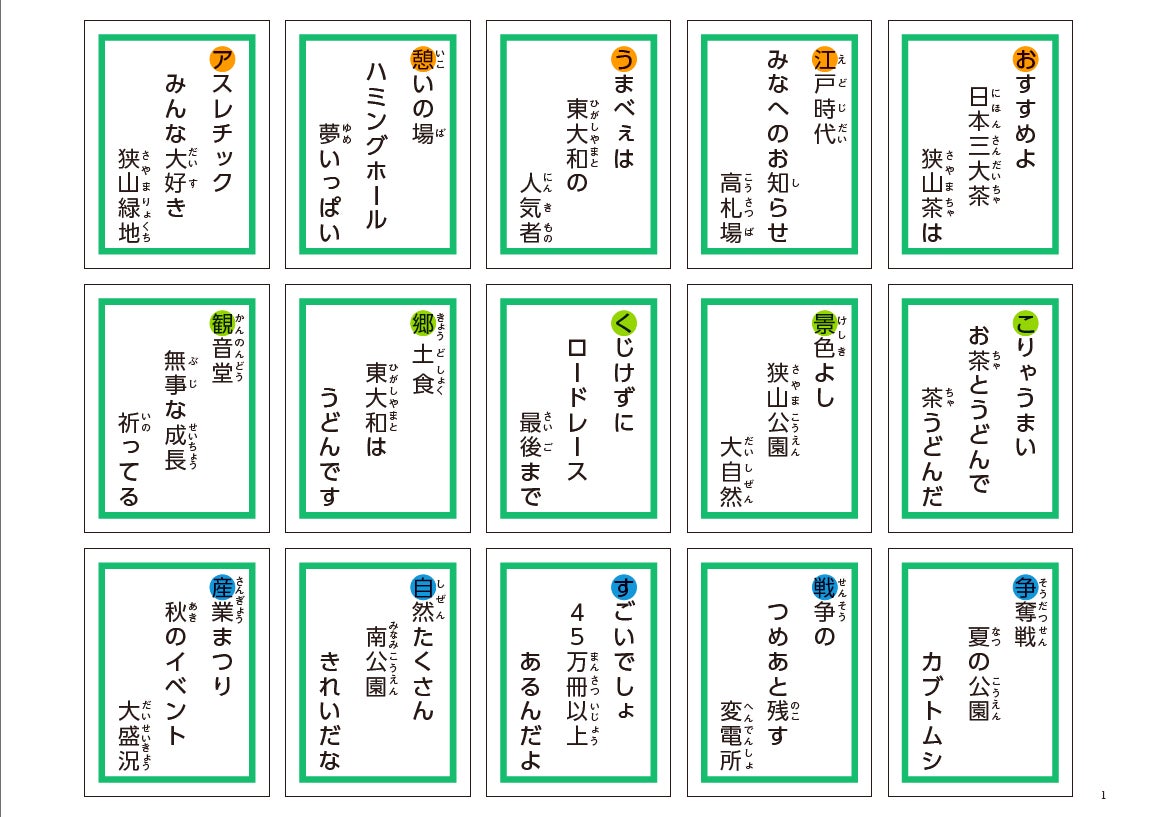 市の魅力のつまった「東大和市郷土かるた」を市外の方々へ配りたい!