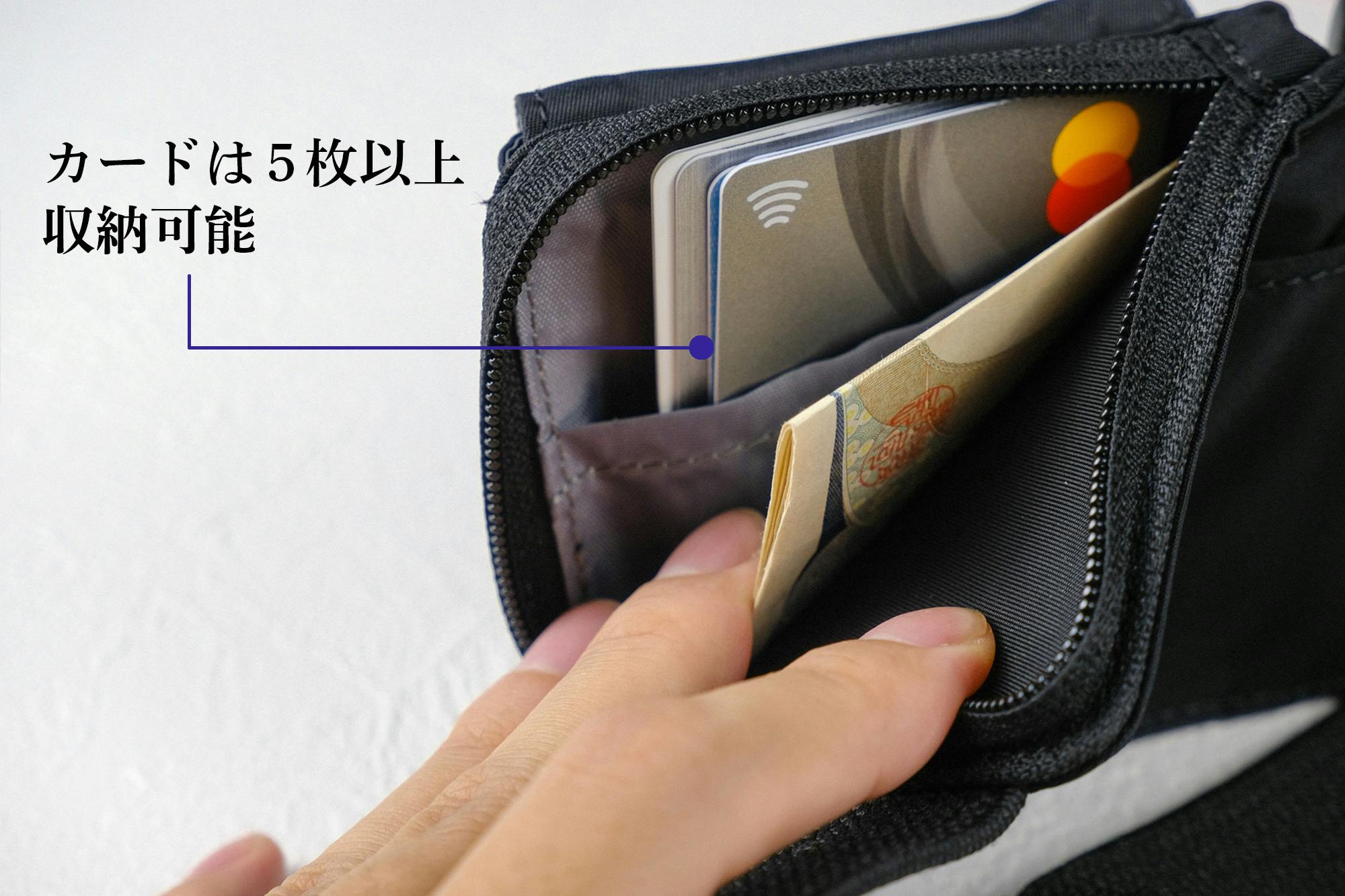クレジットカードの他にも保険証、免許証など、外出時に持っておきたいカード類を十分に携帯できるポケットがついています。