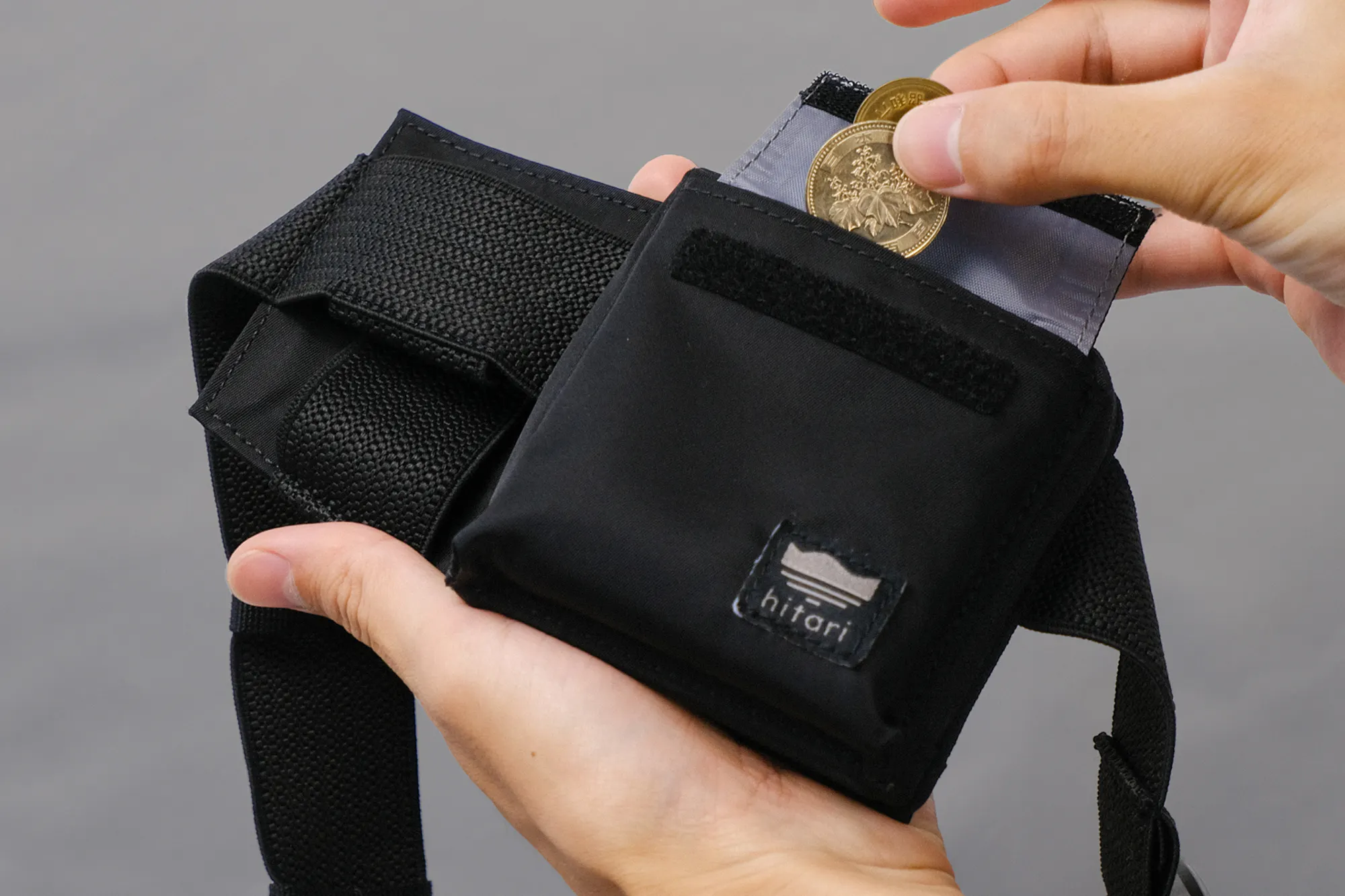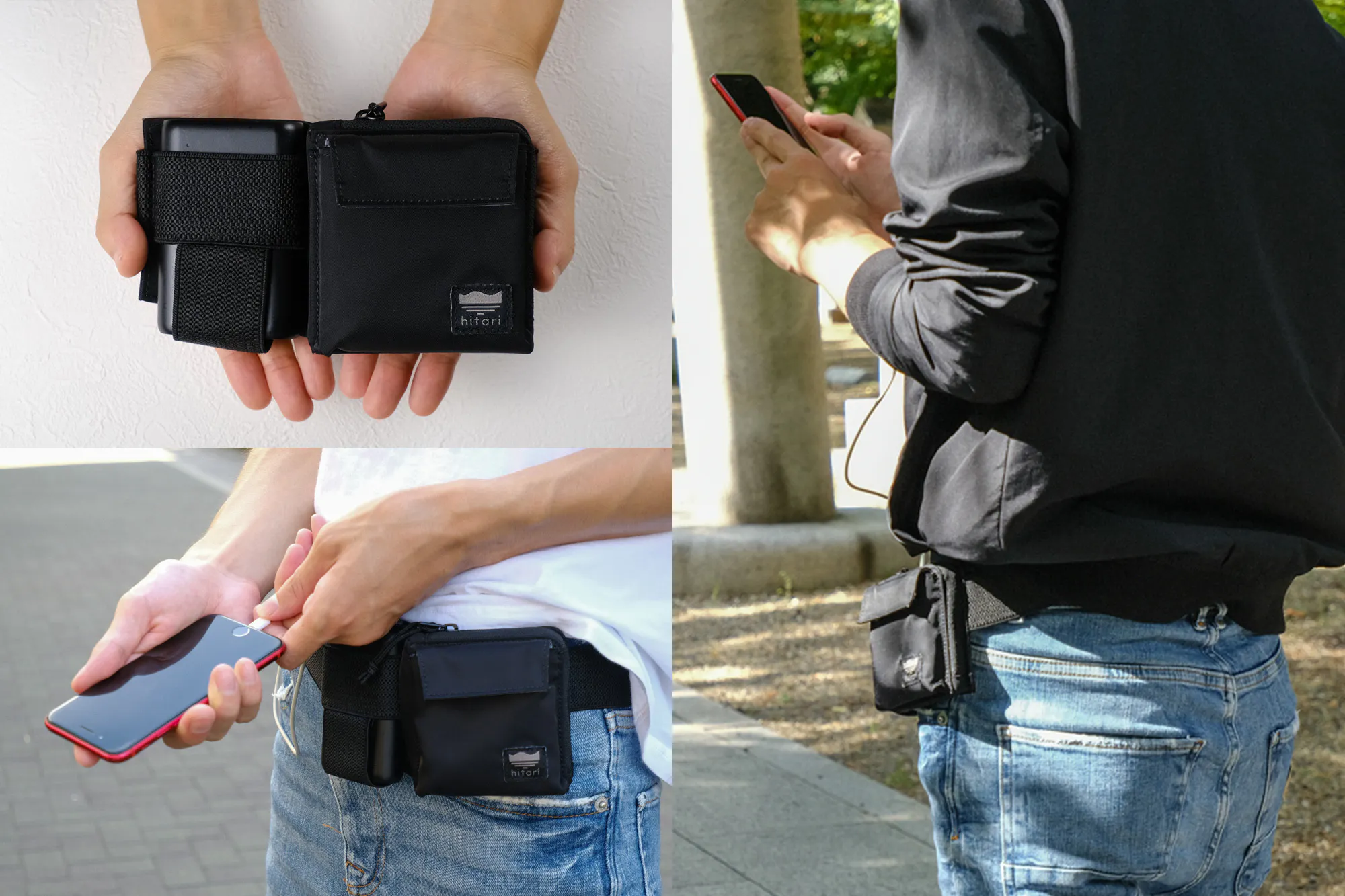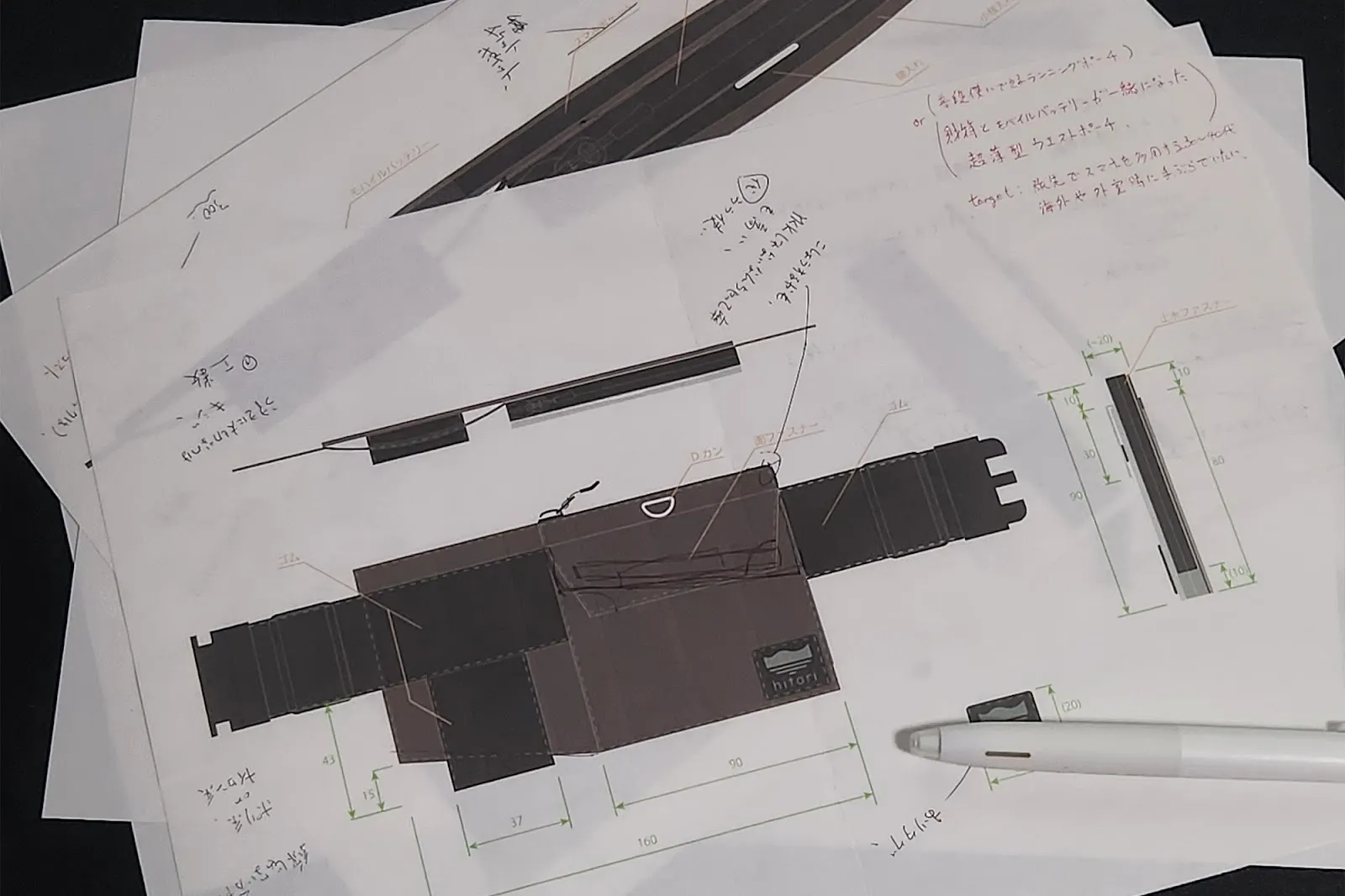 そこでこの商品企画では、走っても負担の少ない形としてランニングポーチにヒントを得て、ウェストポーチ型を採用。